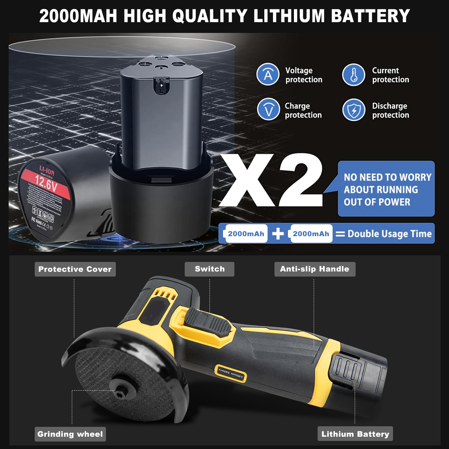 -Nominal voltage: 12V 2000mAh batteries