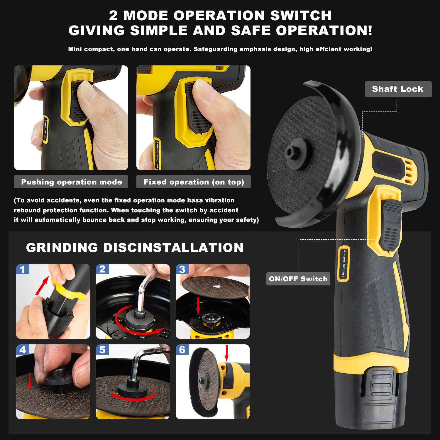 【Portable Mini Angle Grinder】 The size of this angle grinder is 17cmX8cmX10cm , and the weight is only 1kg. It is very light and easy to use even for women.
