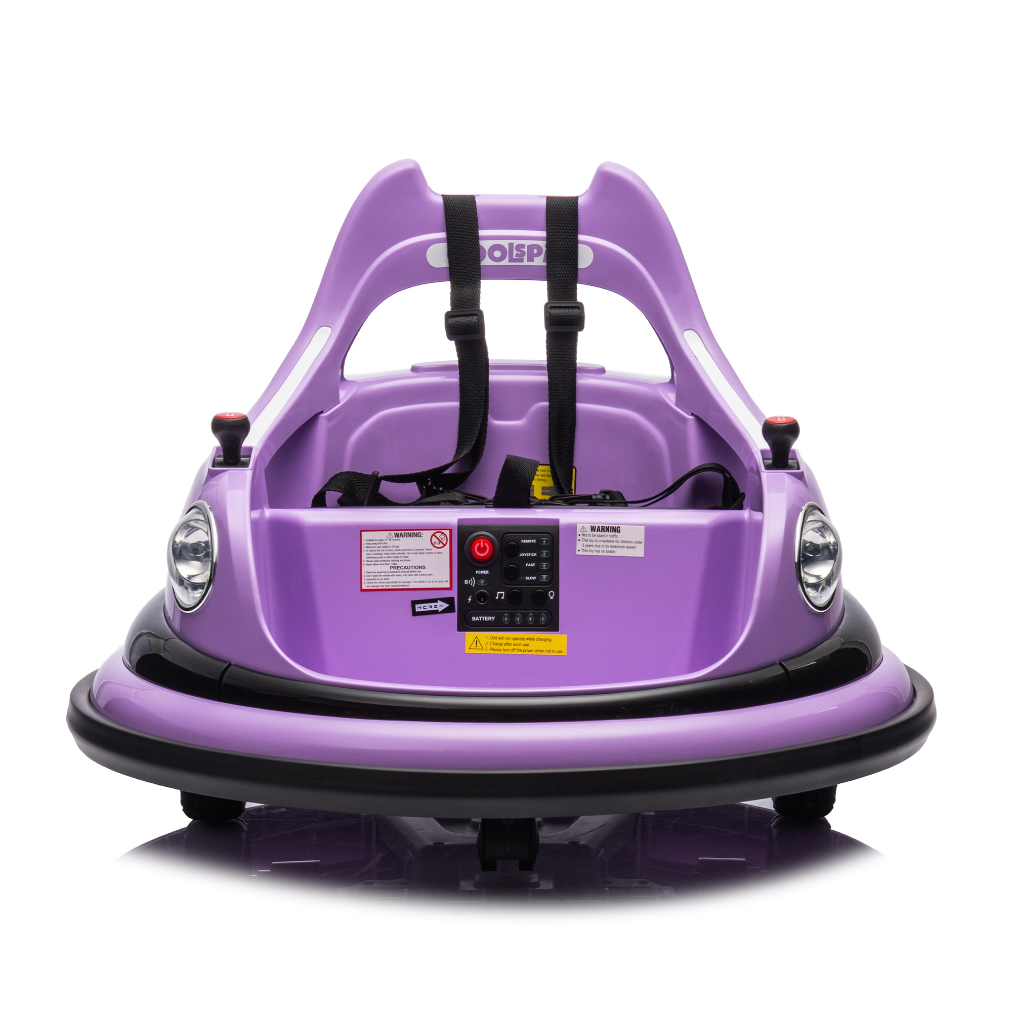 Dual-Drive System with Front and Rear Omni-directional Wheels: Ensure smooth movement with a dual-drive system and omni-directional wheels. Integrated Center Console under the Seat: Enjoy centralized control with one-touch start, music, lights, Bluetooth, battery level display, high/low-speed settings, and a charging function. Five-Point Safety Harness: Prioritize safety with a reliable five-point safety harness. 1 Hour of Playtime: Extend the fun with up to 1 hour of playtime on a single charge. Parental Remote Control for Bumper Car Play: Parents can safely control and enjoy the bumper car experience remotely. ASTM CPC Safety and Environmental Certification: Complies with ASTM CPC safety and environmental standards, ensuring a certified and eco-friendly product. Features: BATTERY:12v MOTOR:#390*2 Maxmum Load: 66.14lbs Car speed: 2.5km/h Applicable age: 1.5-5 years old WORK HOUR:60MINS Test standards:ASTM,CPSIA,MSDS,CPC FUNCTION: 2.4G Remote Control Function Flowing lights with left-right stream, and large LED lights in the front Vehicle body with full-circle anti-collision strip Handles on both sides control the direction, with a 360-degree rotation capability Dual-drive, with swivel wheels in the front and back Integrated console under the seat: One-key Start, Music, Lights, Bluetooth, Battery Level Display, High/Low Speed, and Charging Function Five-point Safety Belt 1 hour of playtime Parents can safely remote control the bumper car ASTM CPC safety and environmental certification