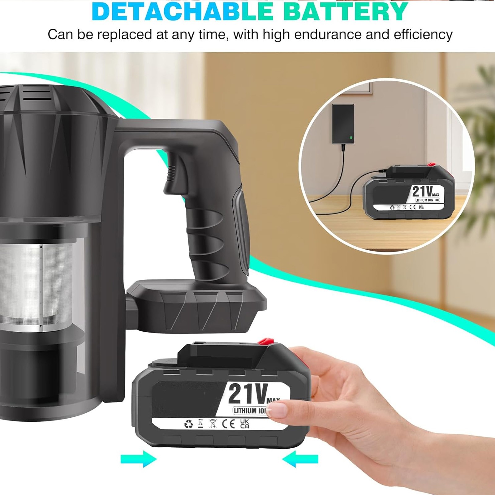 The FABULETTA cordless vacuum cleaner is equipped with a high-performance Brushless Motor, delivering an impressive Strong Suction in MAX mode. Choose different suction modes(Max/Standard) according to different scenarios to reduce power consumption.