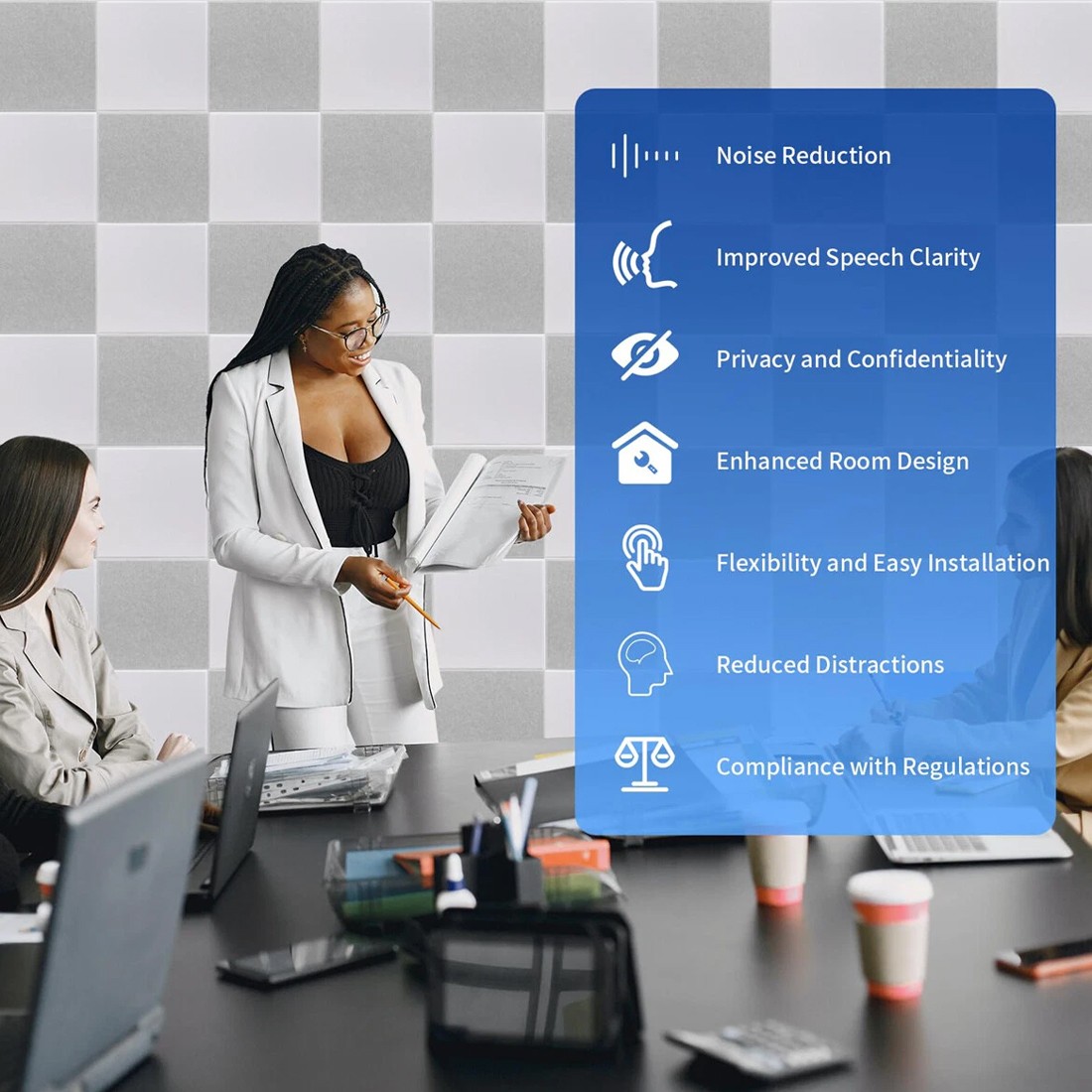 -It reduce noise by absorbing unwanted sound waves, which promotes concentration and communication.