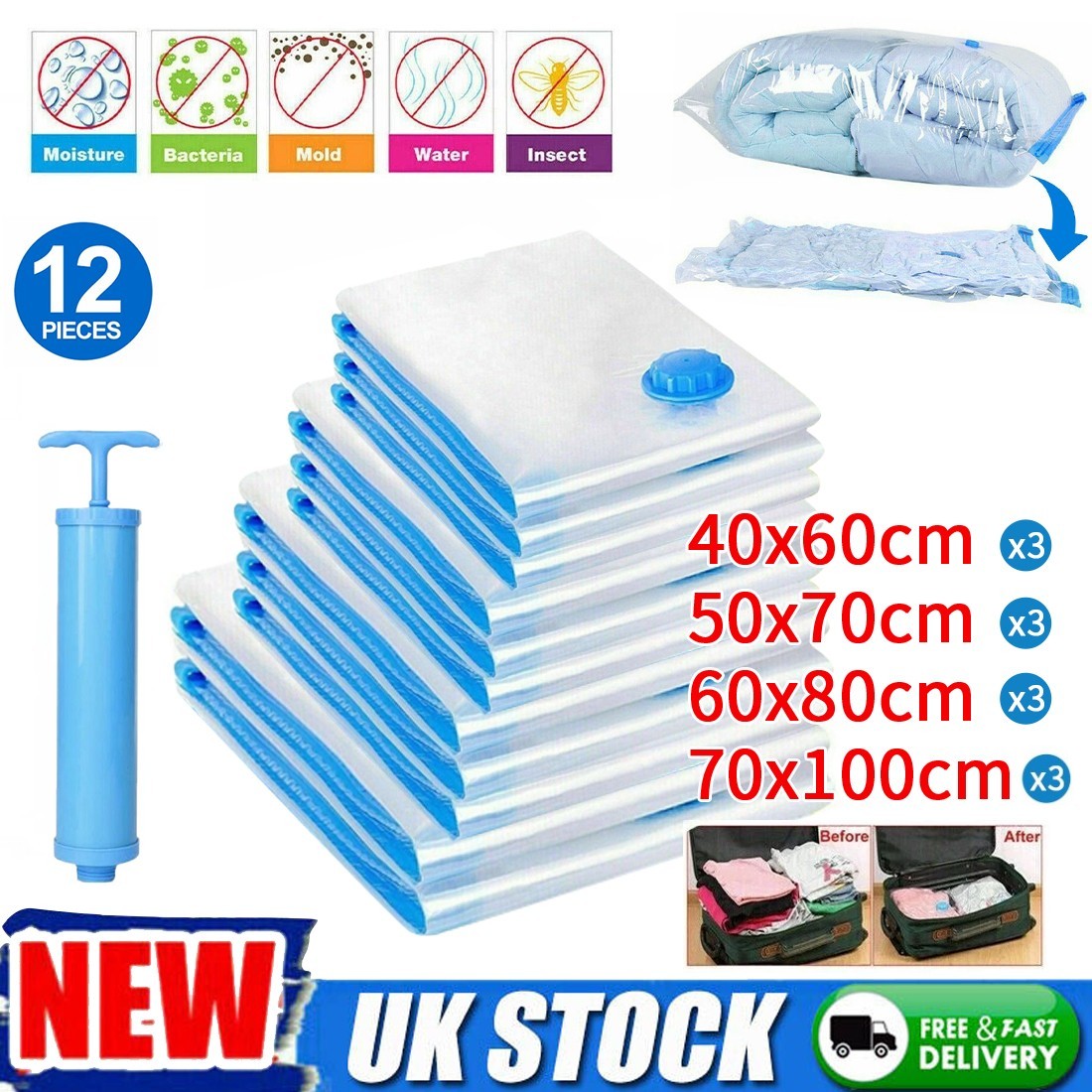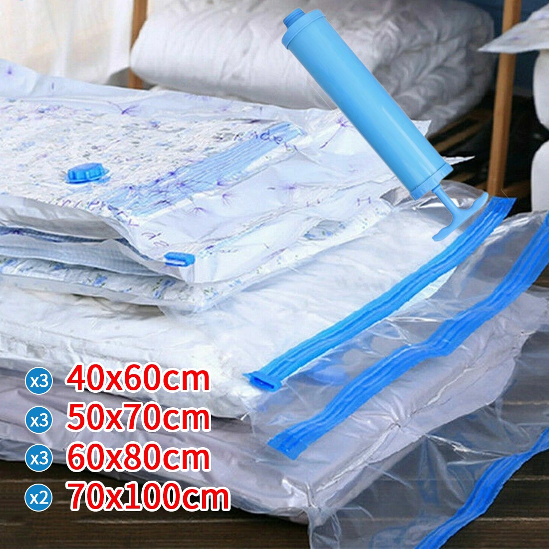 12x Strong Vacuum Storage Bags VAC Space Saving Compressed Bag Vaccum Pack Saver