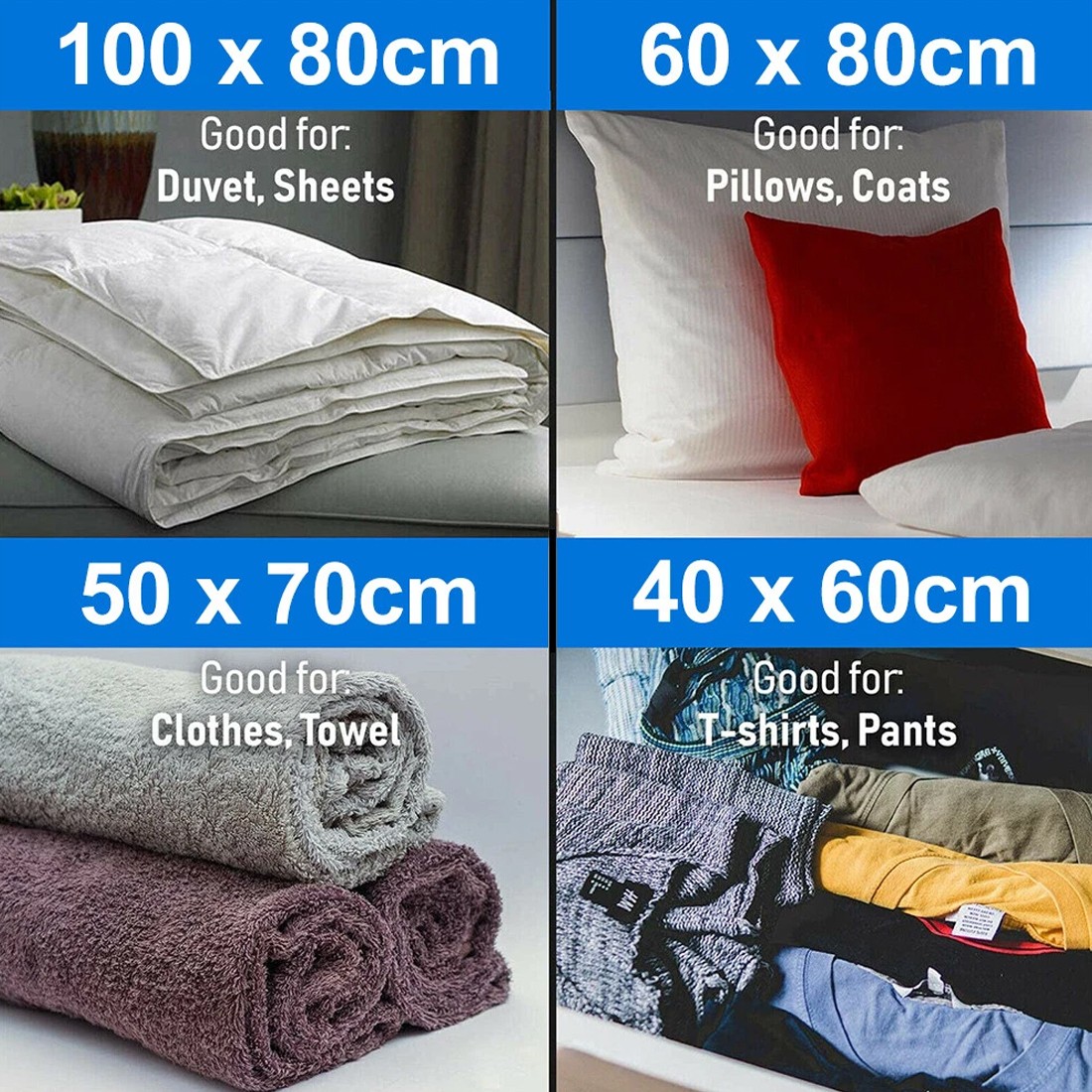 -Store everything from blankets, duvets,quilts, curtains, pillows, clothes and more.