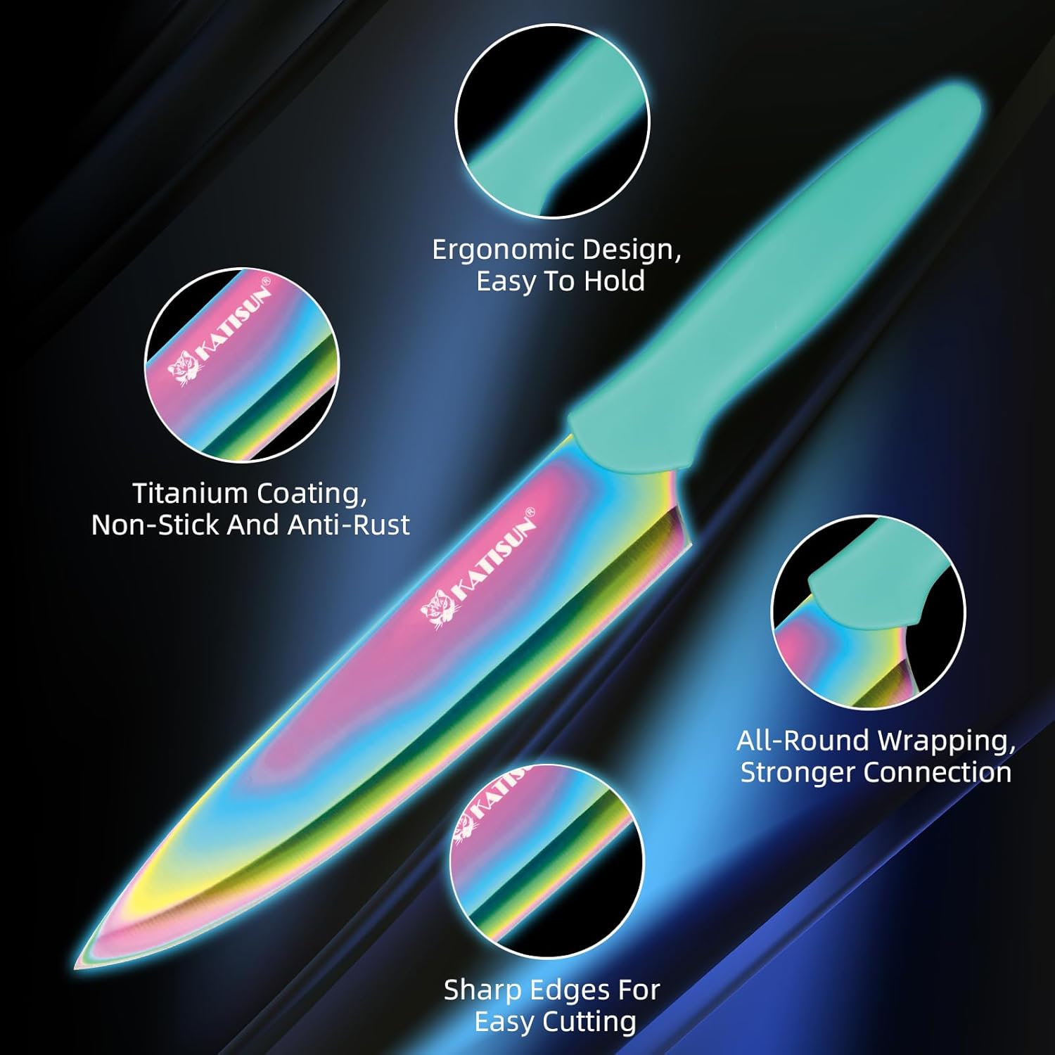 • 【Dazzling Blue Coating】These knives with sheaths aren't just tools; they're works of art. The stunning blue titanium coating not only makes them rust-resistant but adds a touch of elegance to your kitchen. Prepare to impress with every slice
