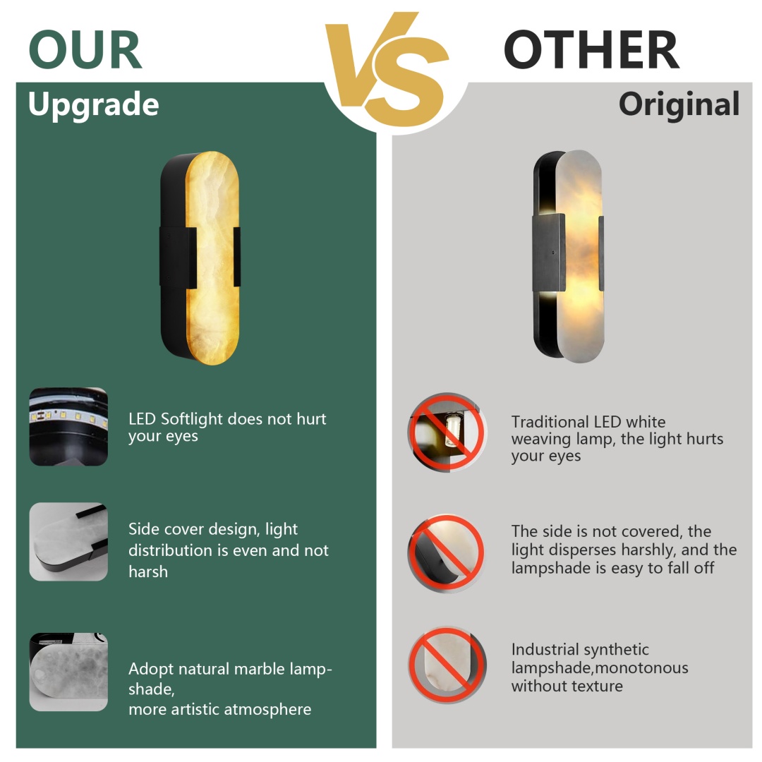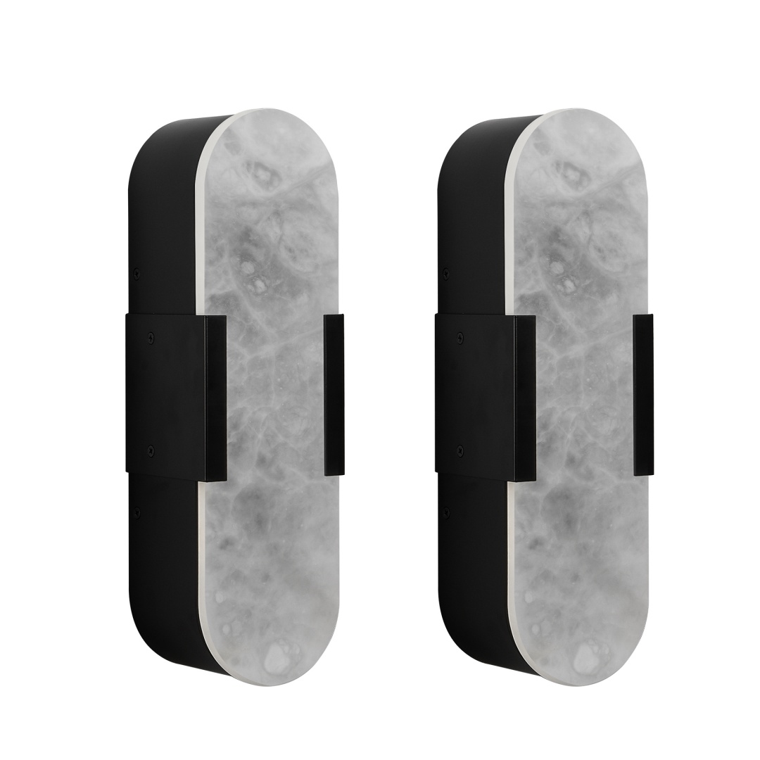 【Unique Snowflake Gypsum】This elegant snowflake gypsum wall lamp features each lampshade made from natural snowflake gypsum, boasting a unique and exquisite texture that showcases the inherent beauty of rare natural stone. We have carefully selected a snow-white texture that is even more precious and beautiful for you. This modern snowflake gypsum wall lamp adds elegance and luxury to any space. [Upgraded Design] The upgraded snowflake gypsum wall lamp does not emit an ugly and glaring bulb light from the side like traditional wall lamps. The black marble wall lamp adopts a fully enclosed design and uses high-quality LED light strips as the source of light, emitting 3000K soft and non-irritating light, easily creating a warm and comfortable atmosphere. It can be adjusted in brightness by pairing with a dimmer (available separately). [High-Quality Materials] This modern wall lamp features an oval design, selected beautiful snowflake gypsum and hard iron materials, hand-polished and meticulously crafted, being sturdy and durable. This exquisite black wall lamp set includes two wall lamps and is suitable for any modern, minimalist, retro or luxurious home environment. [Enhance Your Atmosphere] The black wall lamp is perfect for use in bathrooms, corridors, living rooms, bedrooms, staircases, bedside tables, lobbies, dining rooms, etc. The black snowflake gypsum wall lamp not only illuminates any space but also adds an elegant touch.
