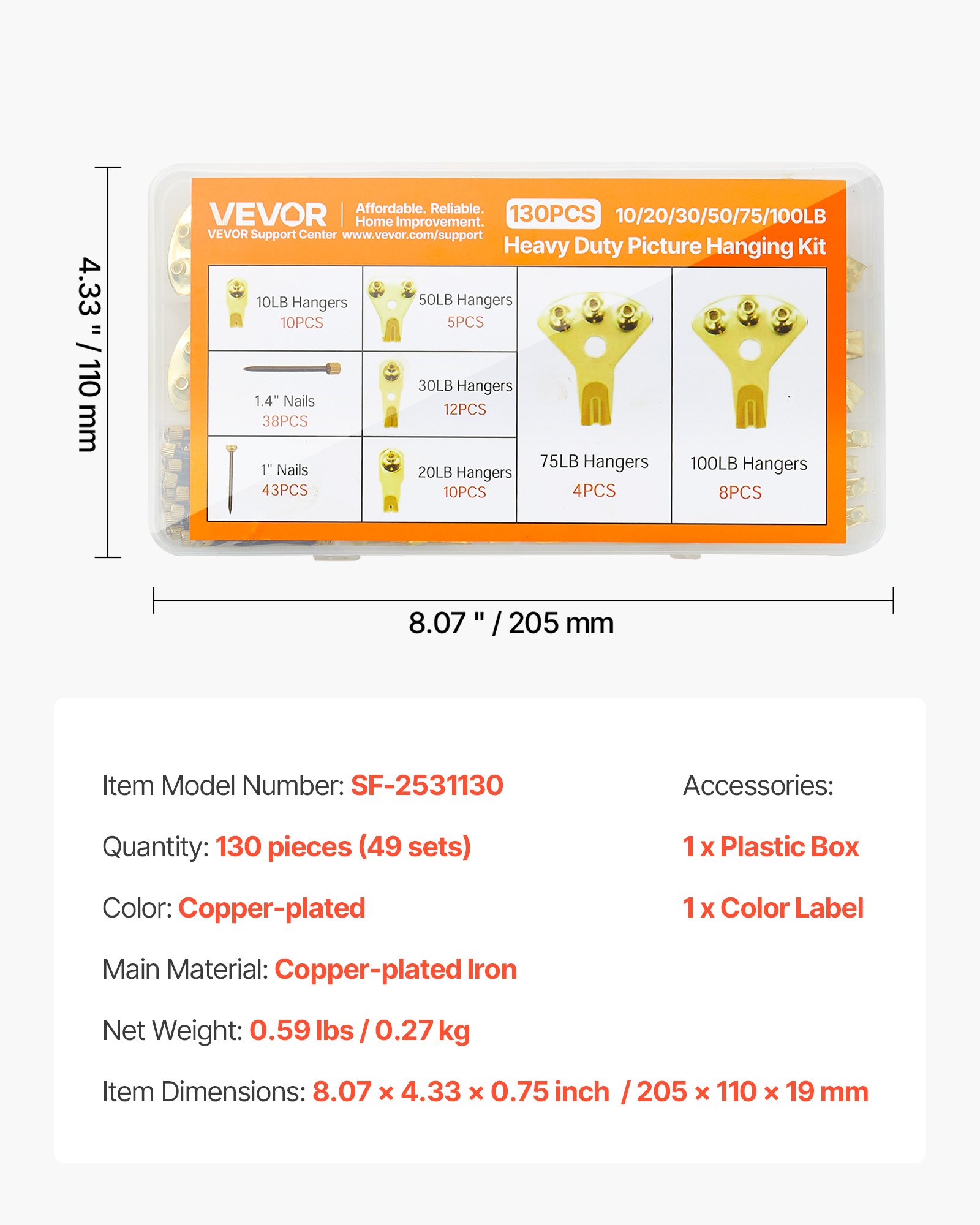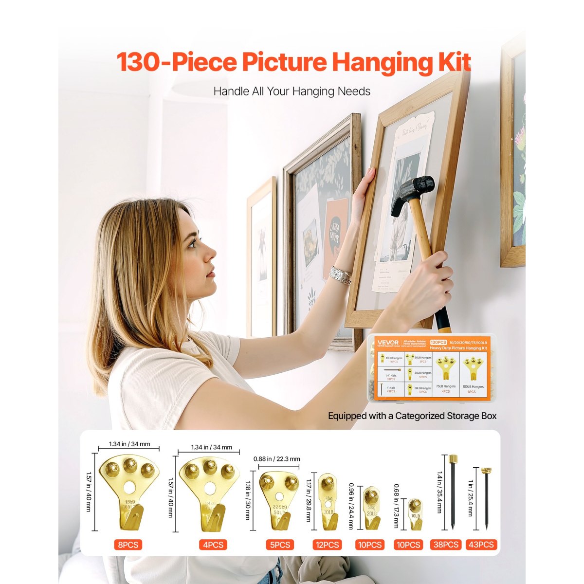 130Pcs Picture Frame Hangers With Nails Metal Photo Hanging Kit