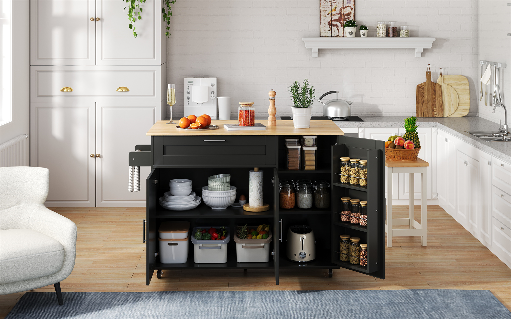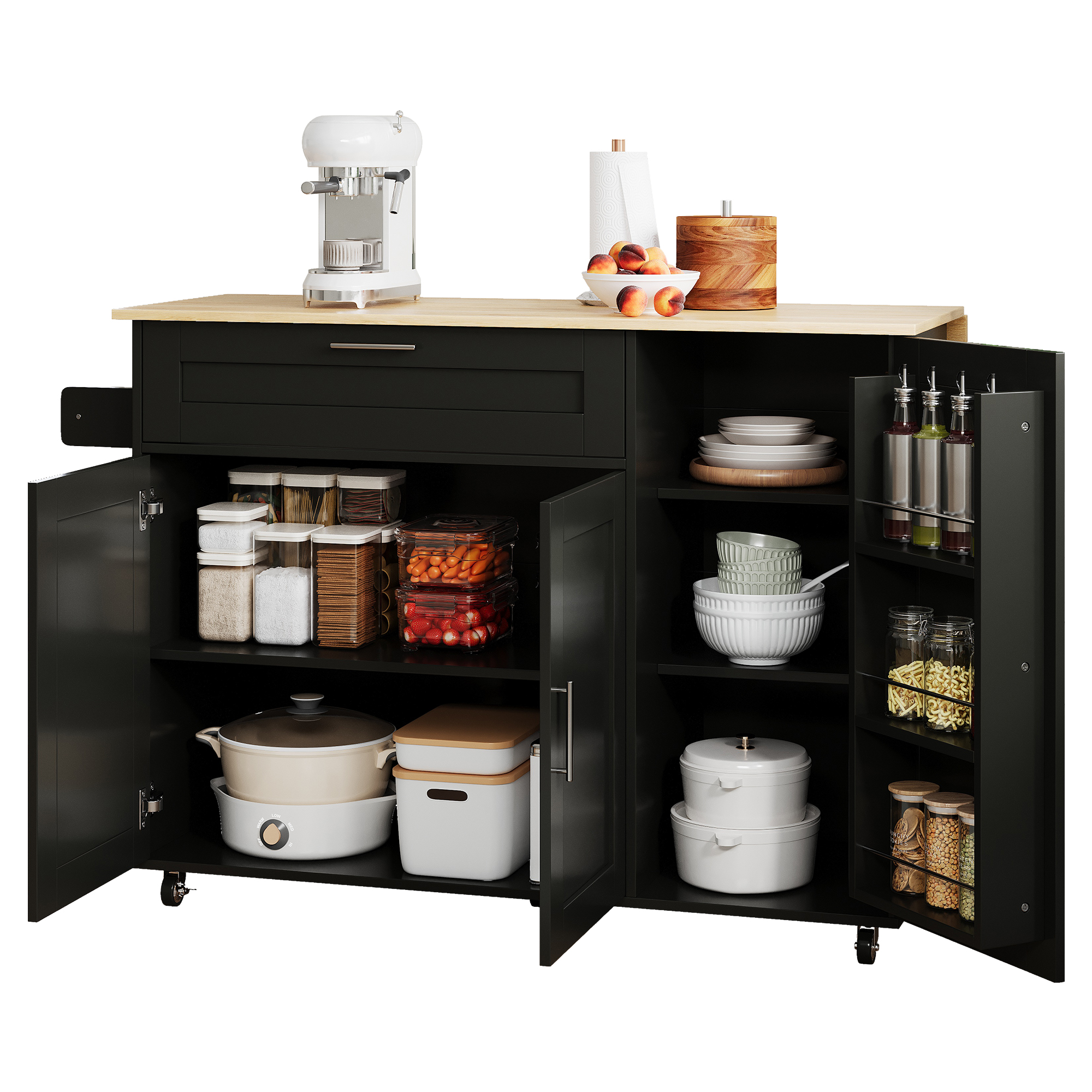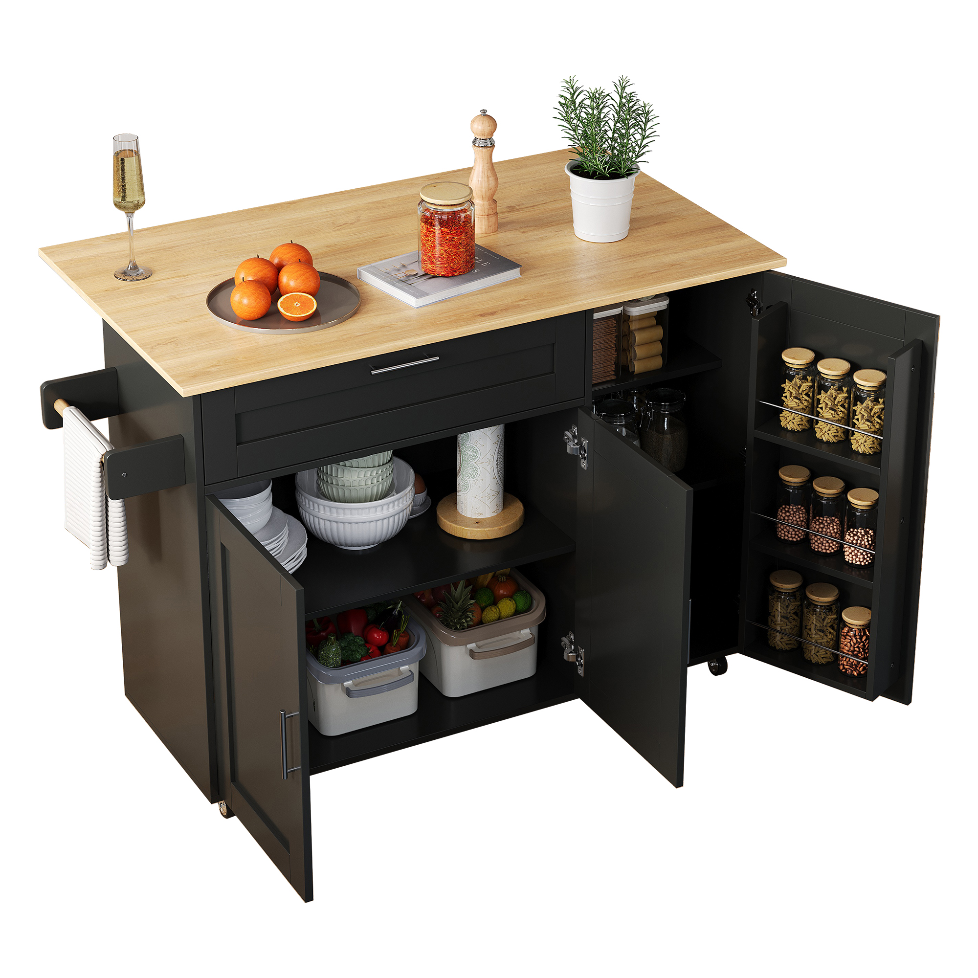 Product Name:132.5*44(70)*90cm Kitchen Island on Wheels, Rolling Storage Trolley with Foldable Tabletop, multifunctional cabinet, spice rack, towel holder, 5 wheels, suitable for kitchen/dining/house