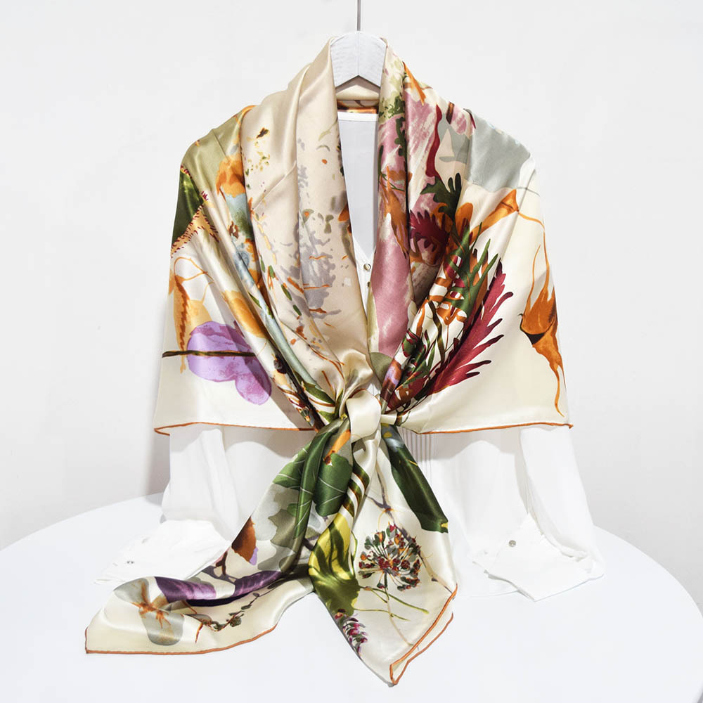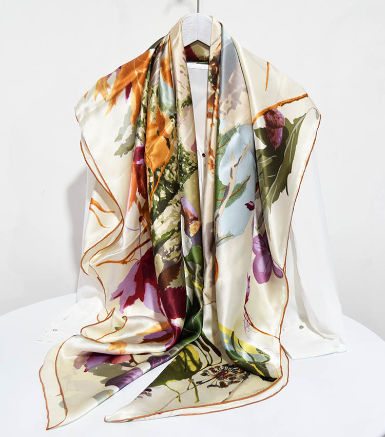 Material: Mulberry SilkIngredient content: 100%Length (CM): 135Width (CM): 135