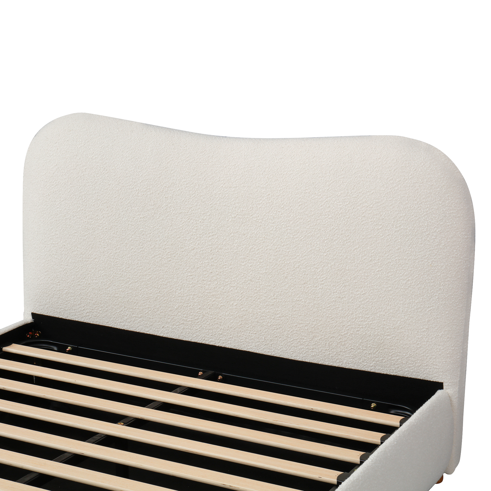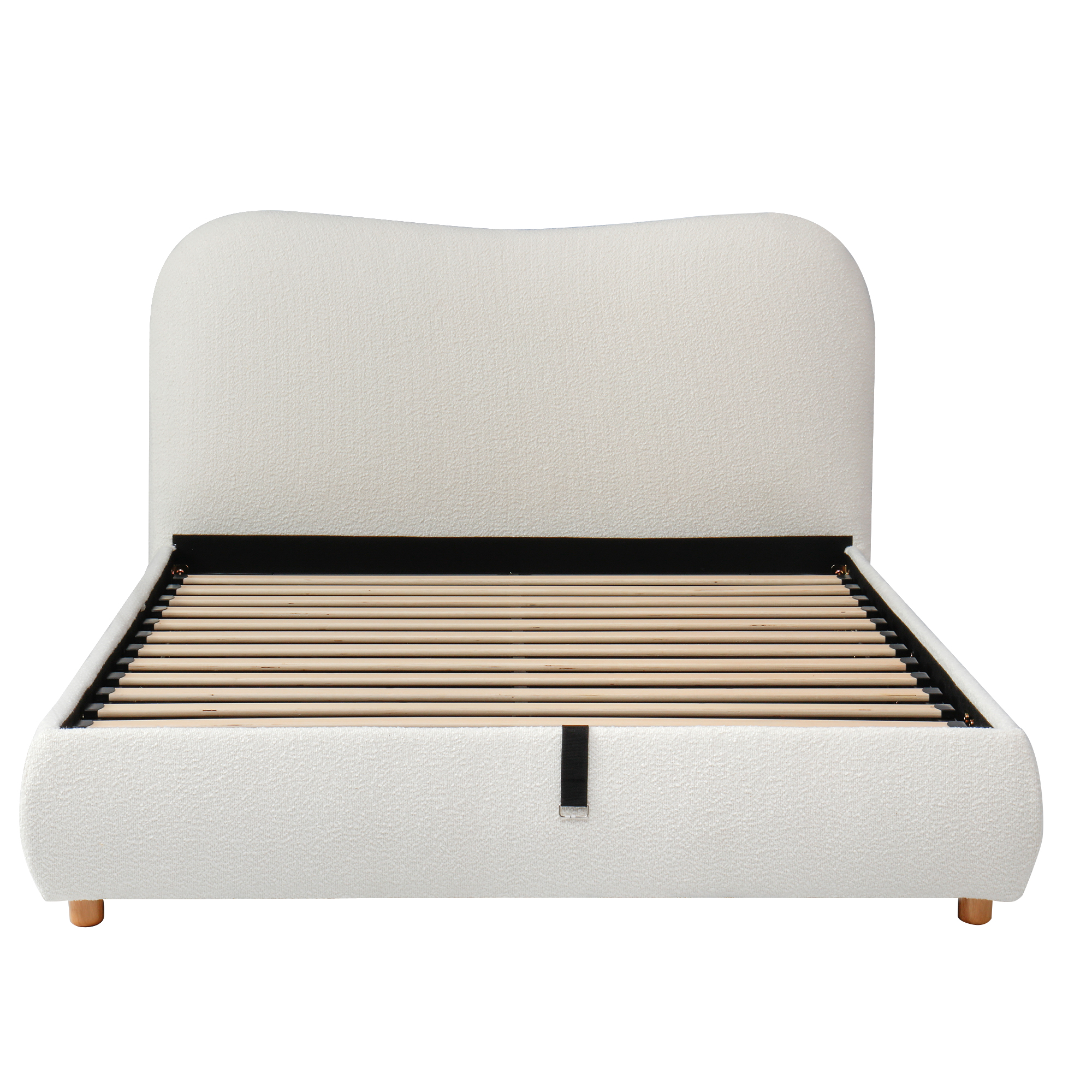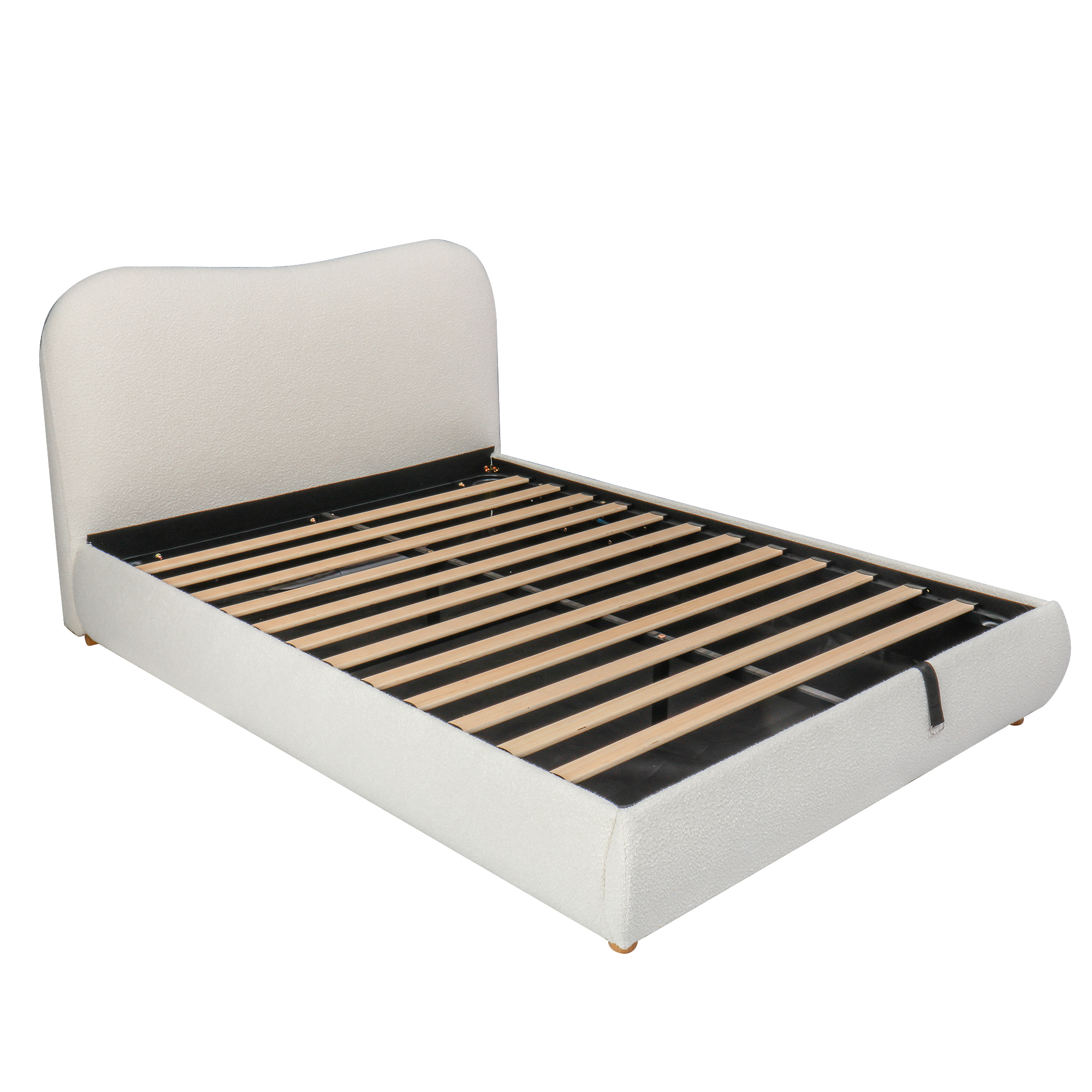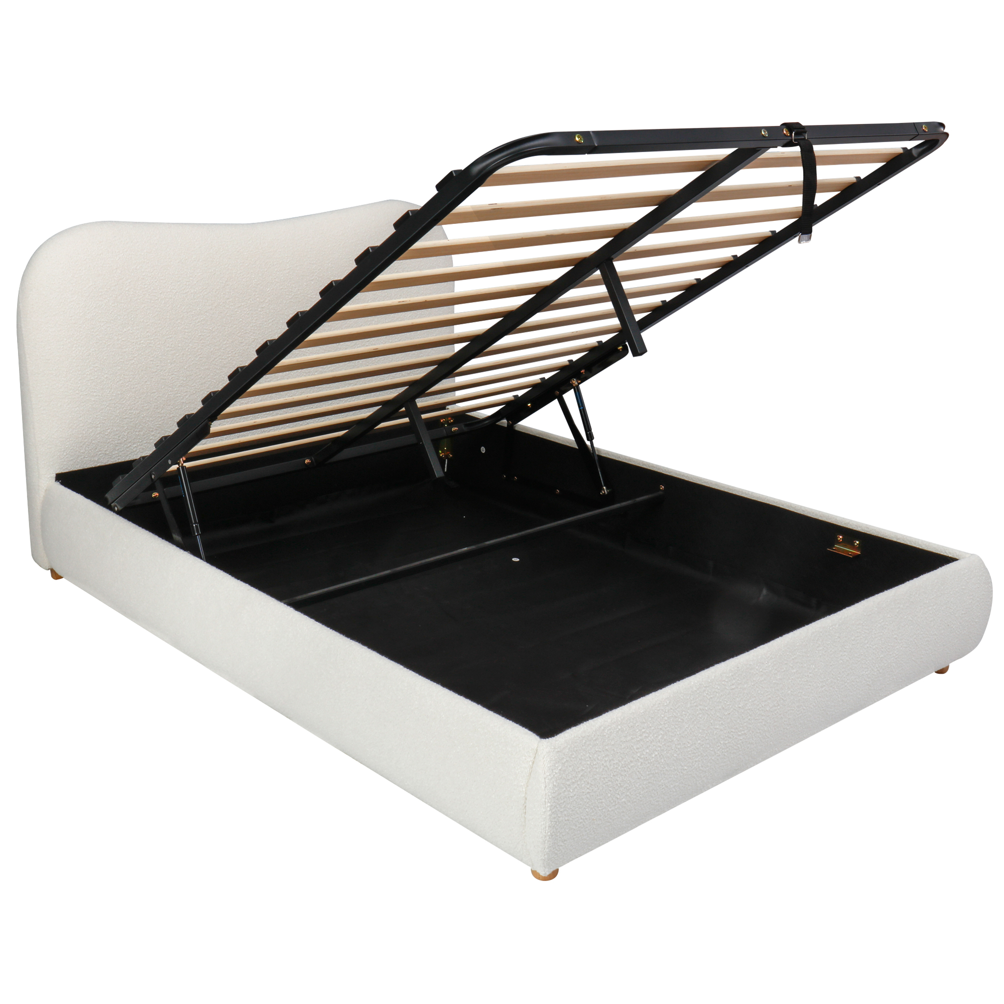 Product Name:135x190cm 4ft6 Ottoman Storage Bed Frame with Curved Shaped Headboard, Soft Rounded Corners, Double Upholstered Bed Frame with Boucle Fabric, Warm White