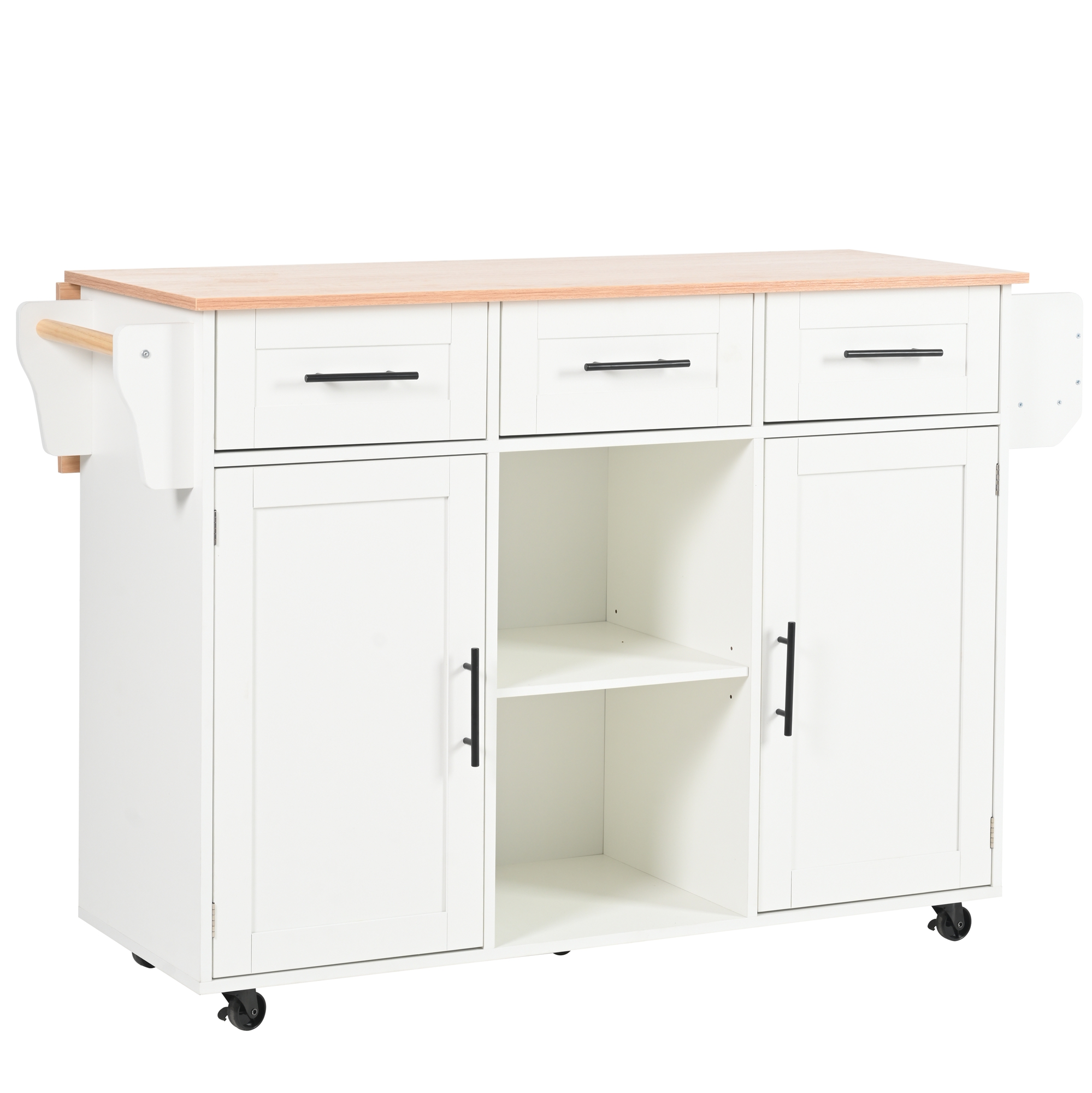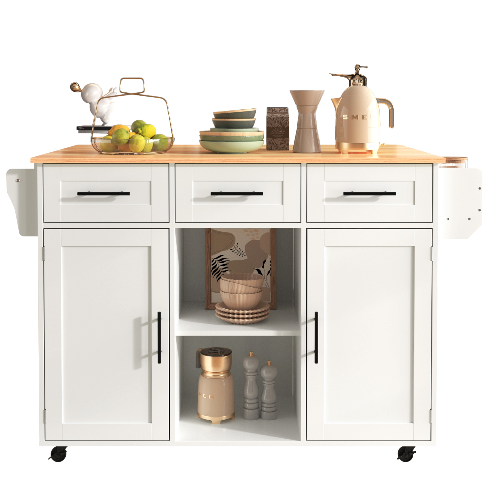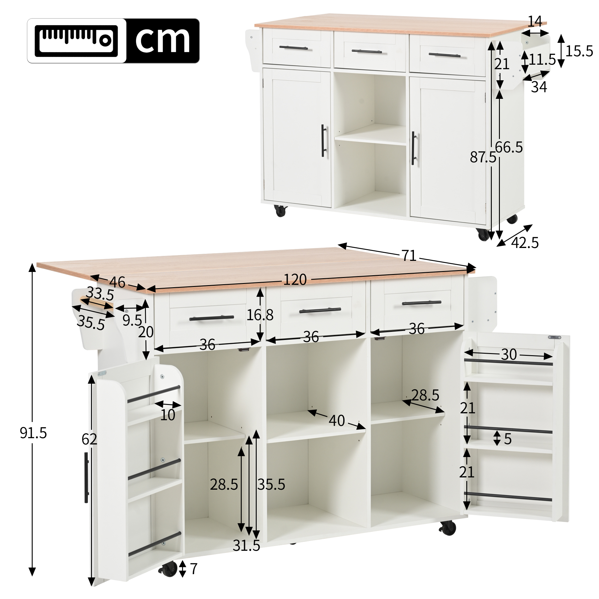 Product Name:139x46(71)x91.5 cm Kitchen island on wheels,large dining cart, trolley , foldable wood grain countertop, 3 drawers, interchangeable wheels & solid wood feet, for dining room/living room