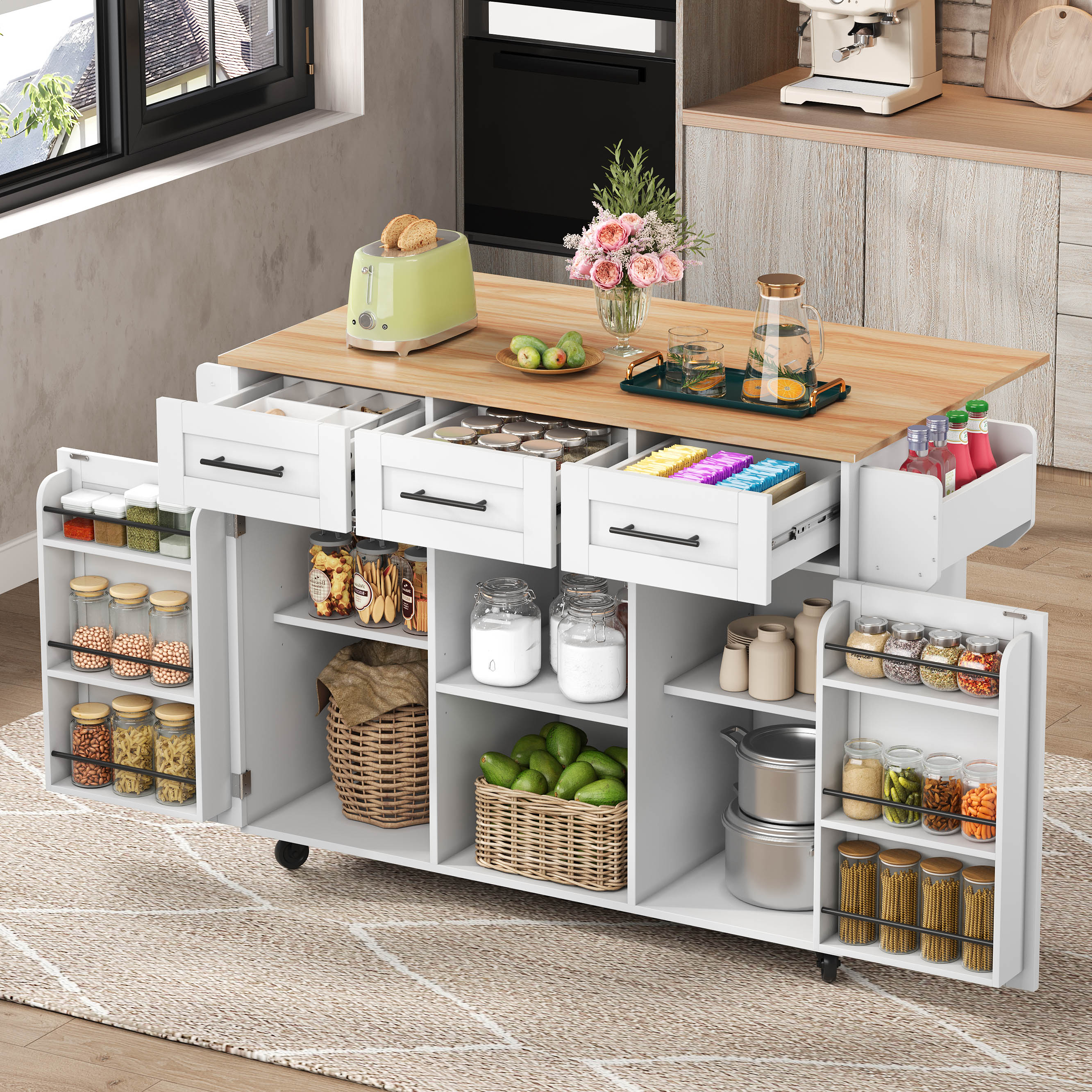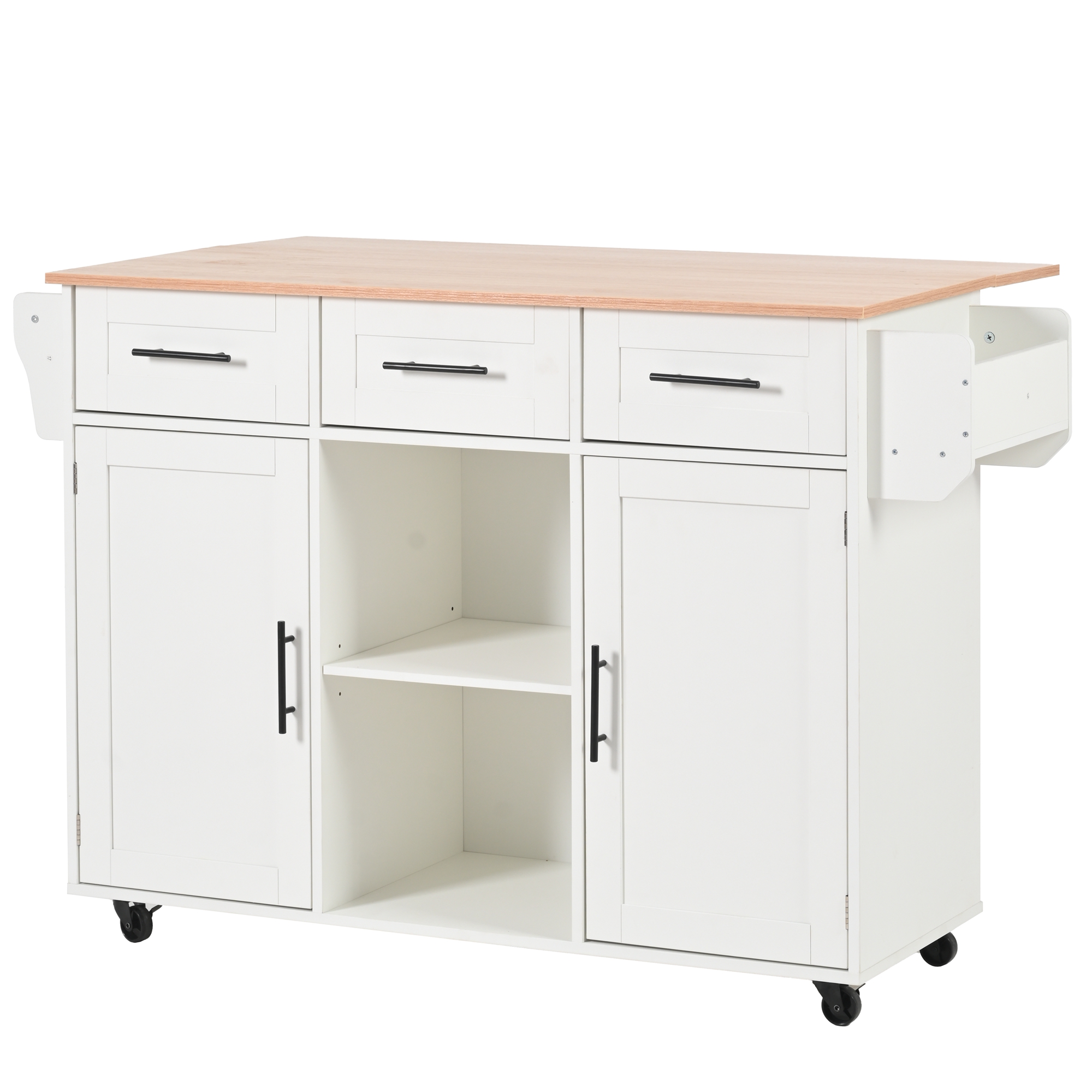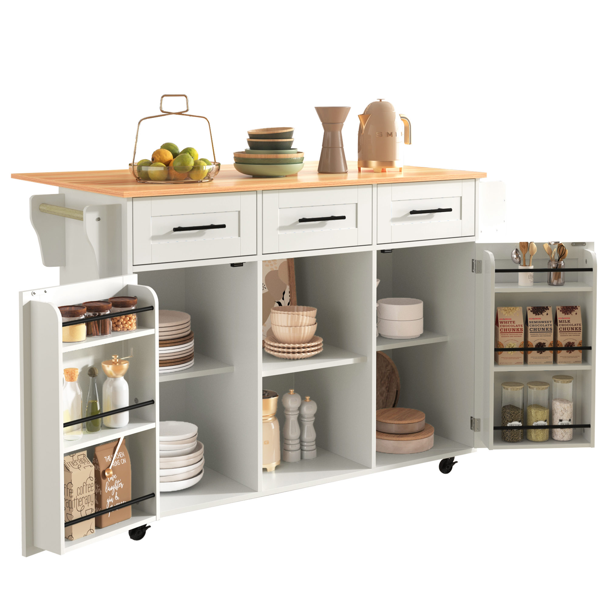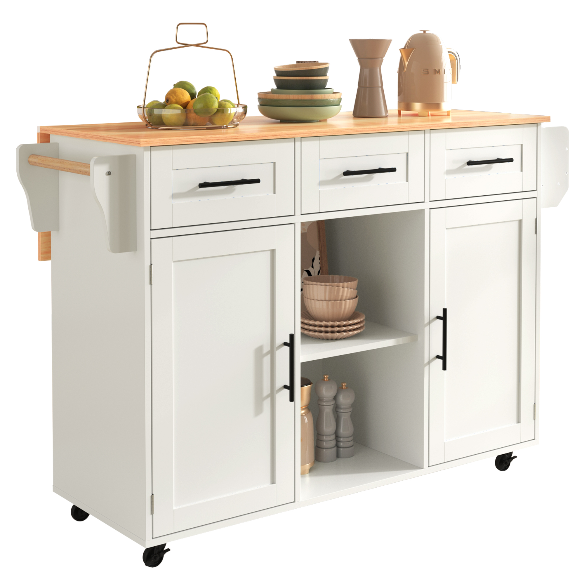 Product Name:139x46(71)x91.5 cm Kitchen island on wheels,large dining cart, trolley , foldable wood grain countertop, 3 drawers, interchangeable wheels & solid wood feet, for dining room/living room