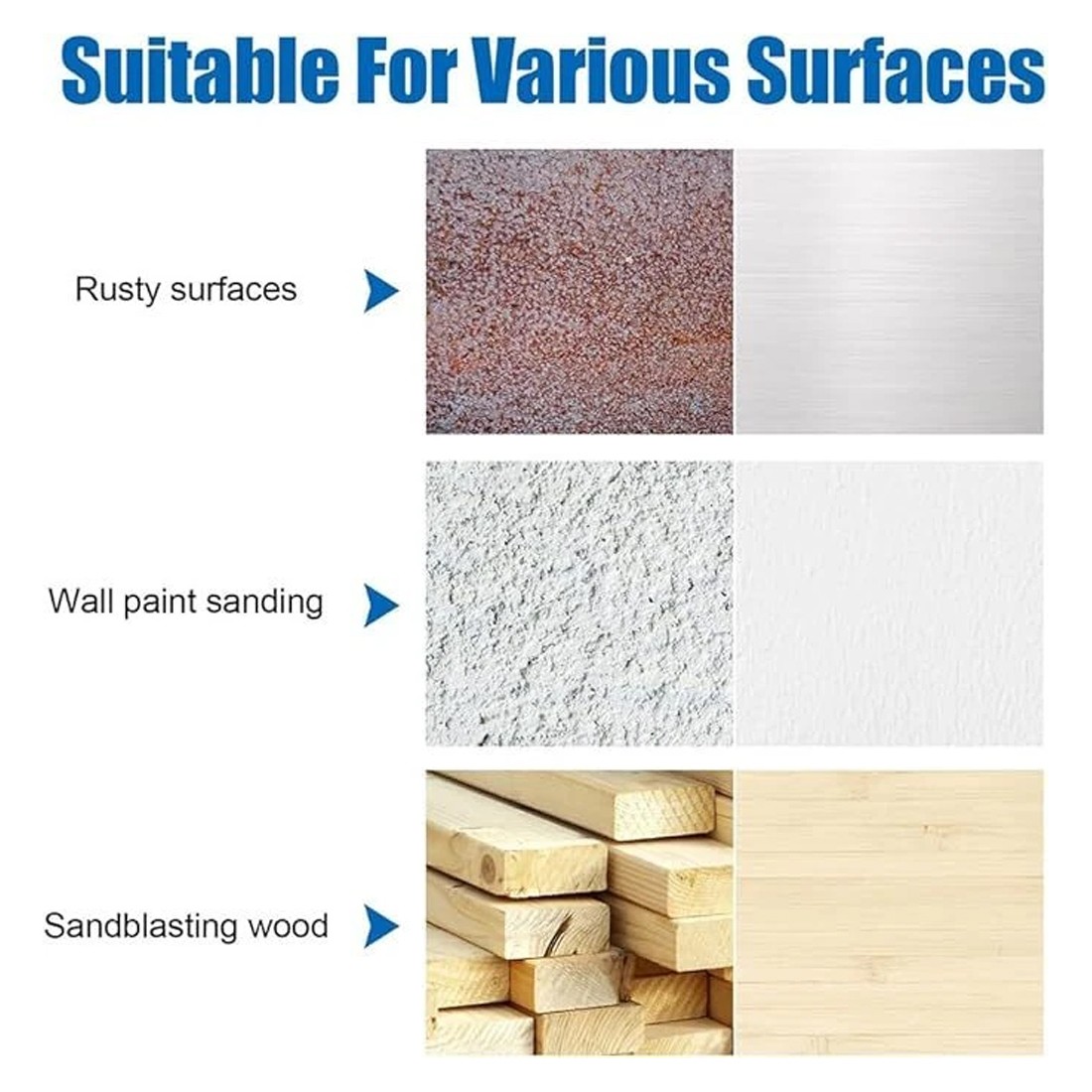 The T-shaped brush has a larger contact area and a wider distribution of steel wires. It can greatly improve work efficiency for large areas of metal surfaces, such as removing old paint from car bodies, removing rust from large metal billboards, and removing local rust from ship hulls.