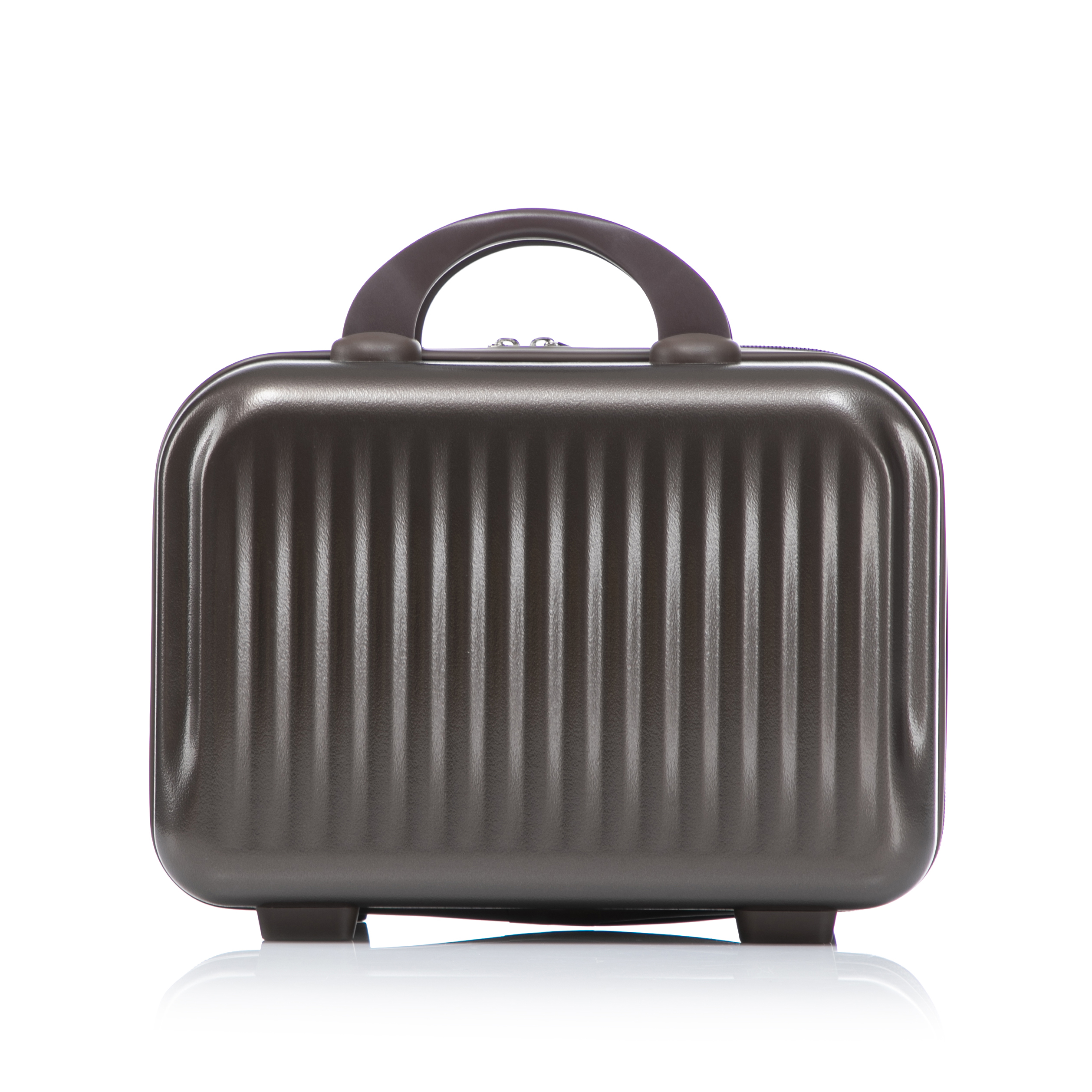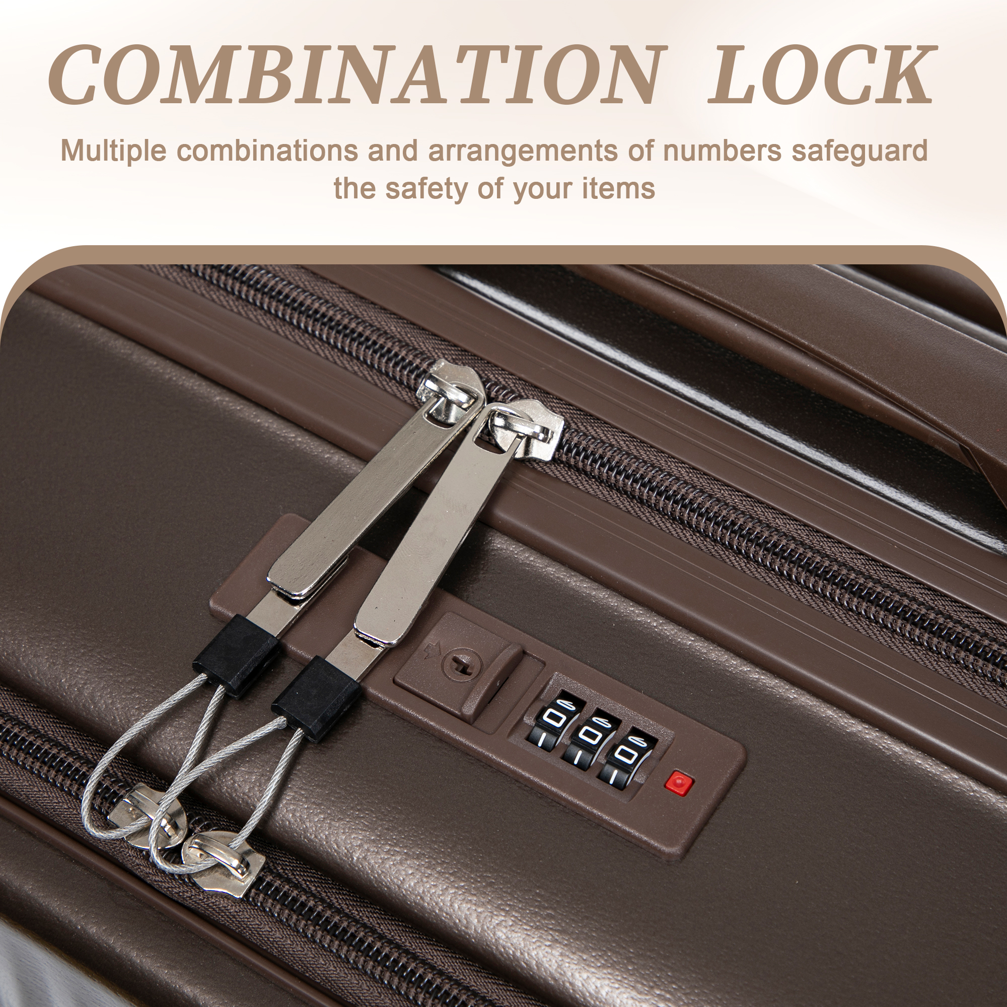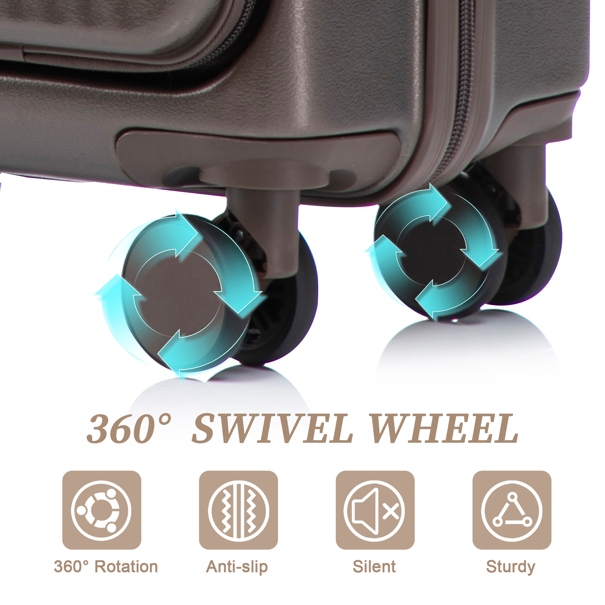 Product Name:14"/20" 2 pcs/set in ABS Spinner Wheel Luggage, with Combination Lock and Front Opening Design, 14" Cosmetic Case (Brown)