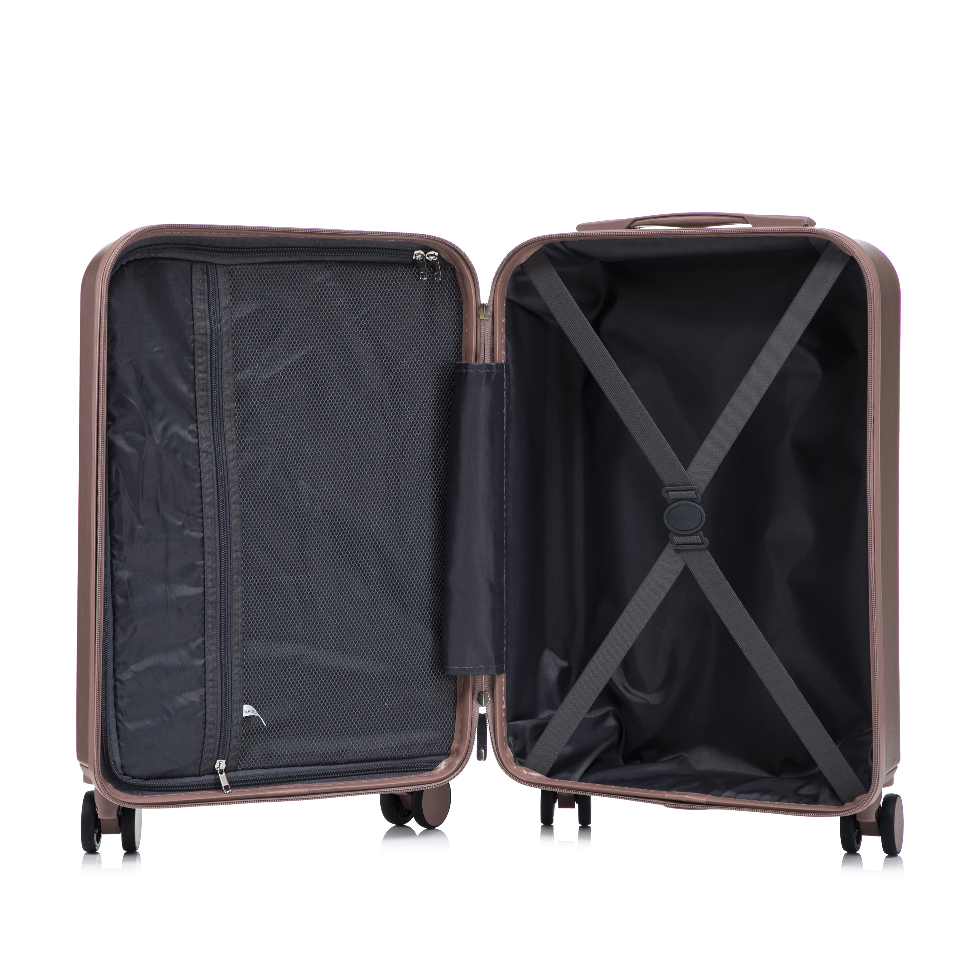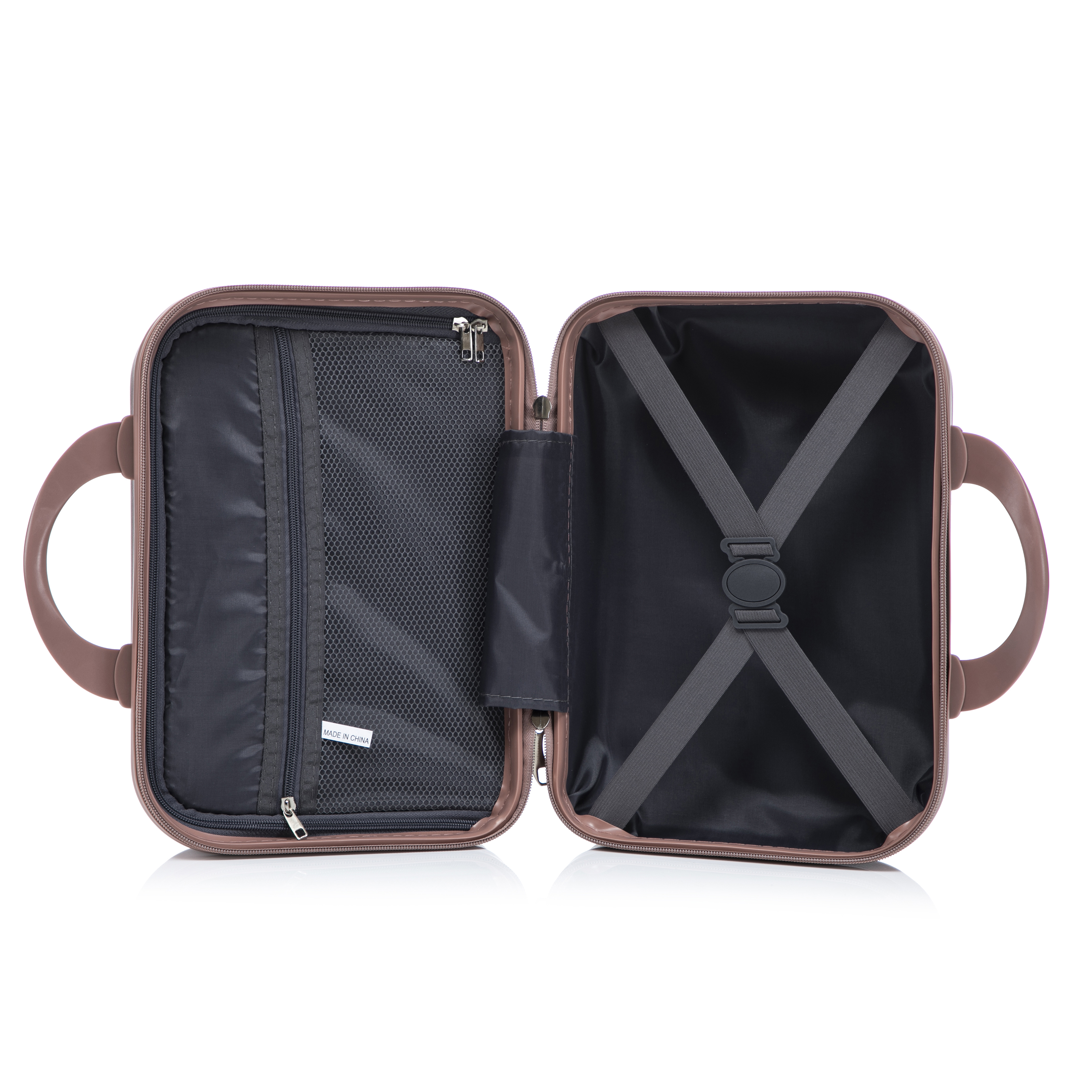 Product Name:14"/20" 2 pcs/set in ABS Spinner Wheel Luggage, with Combination Lock and Front Opening Design, 14" Cosmetic Case (Champagne)