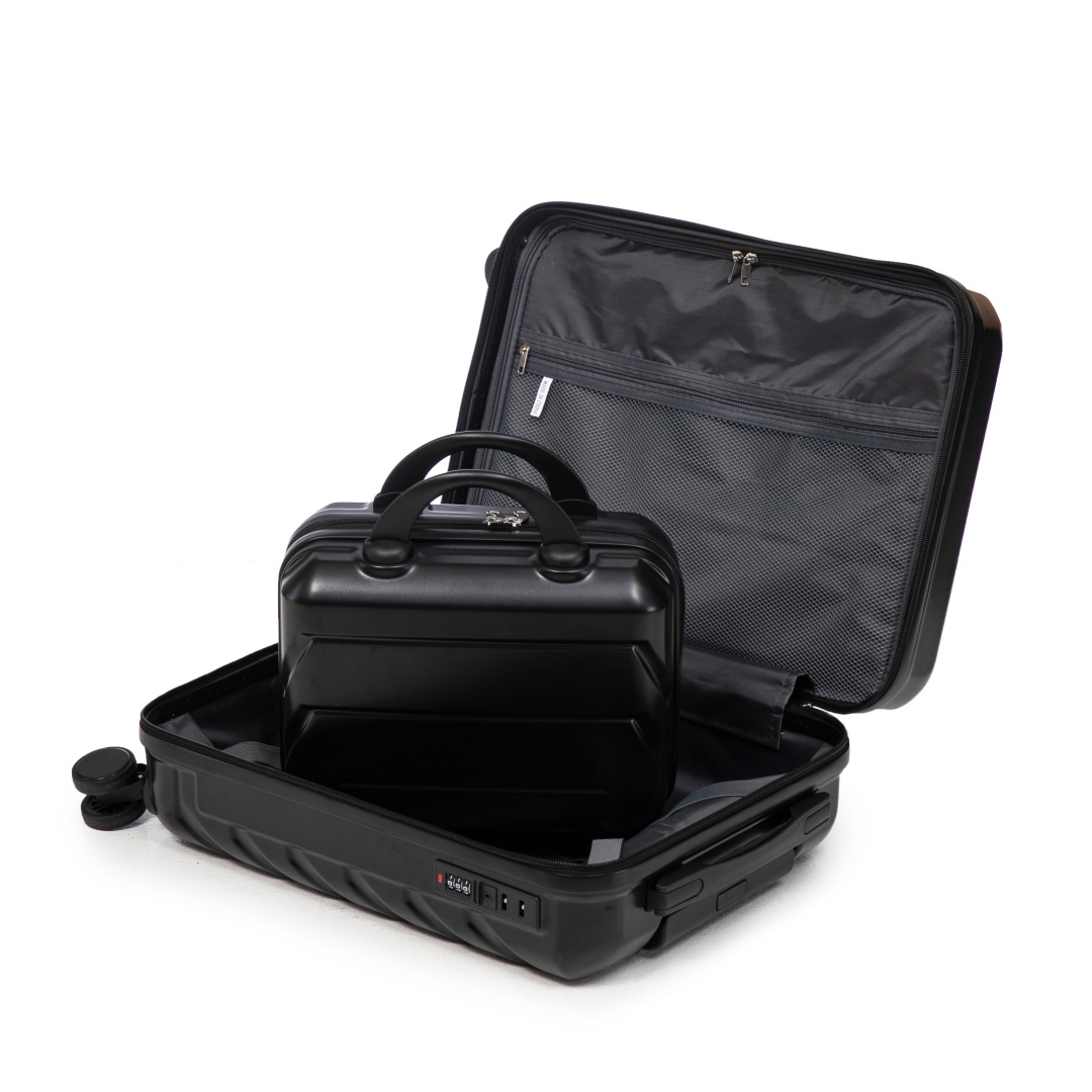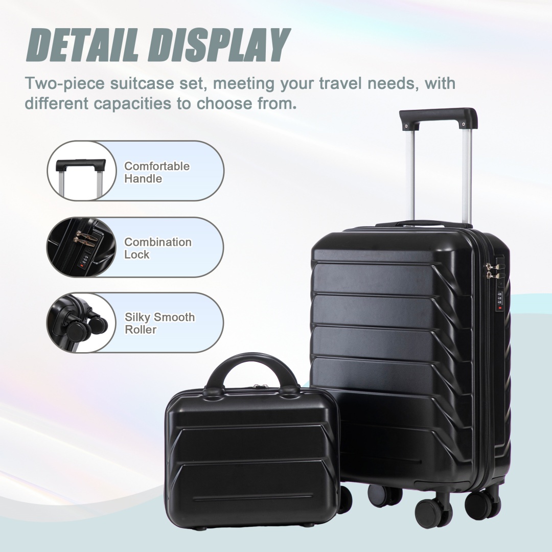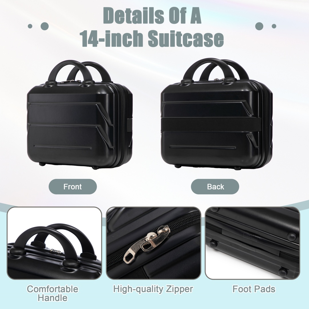 Product Name:14"/20" 2 pcs/set in ABS Spinner Wheel Luggage, with Combination Lock,14" Cosmetic Case (Black)