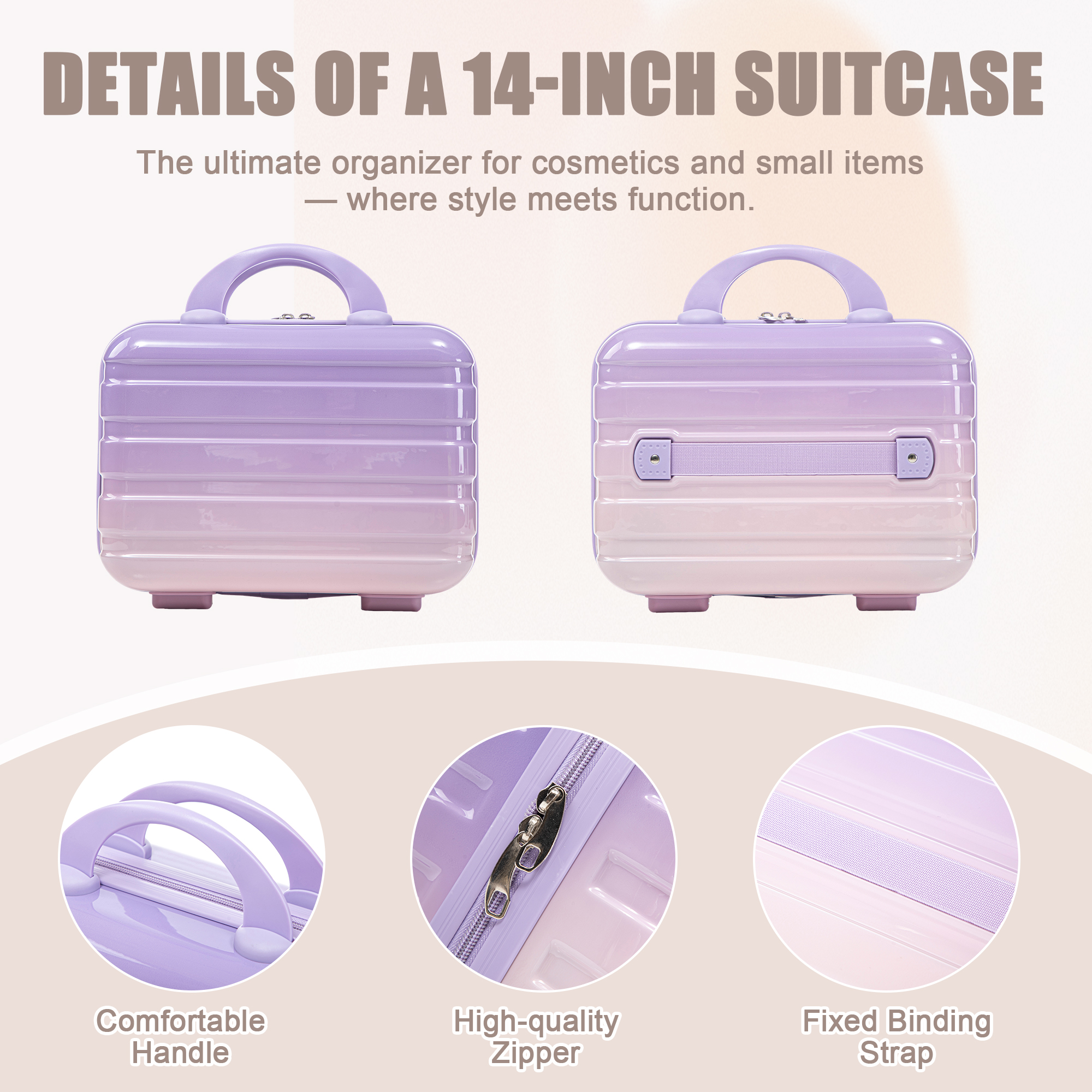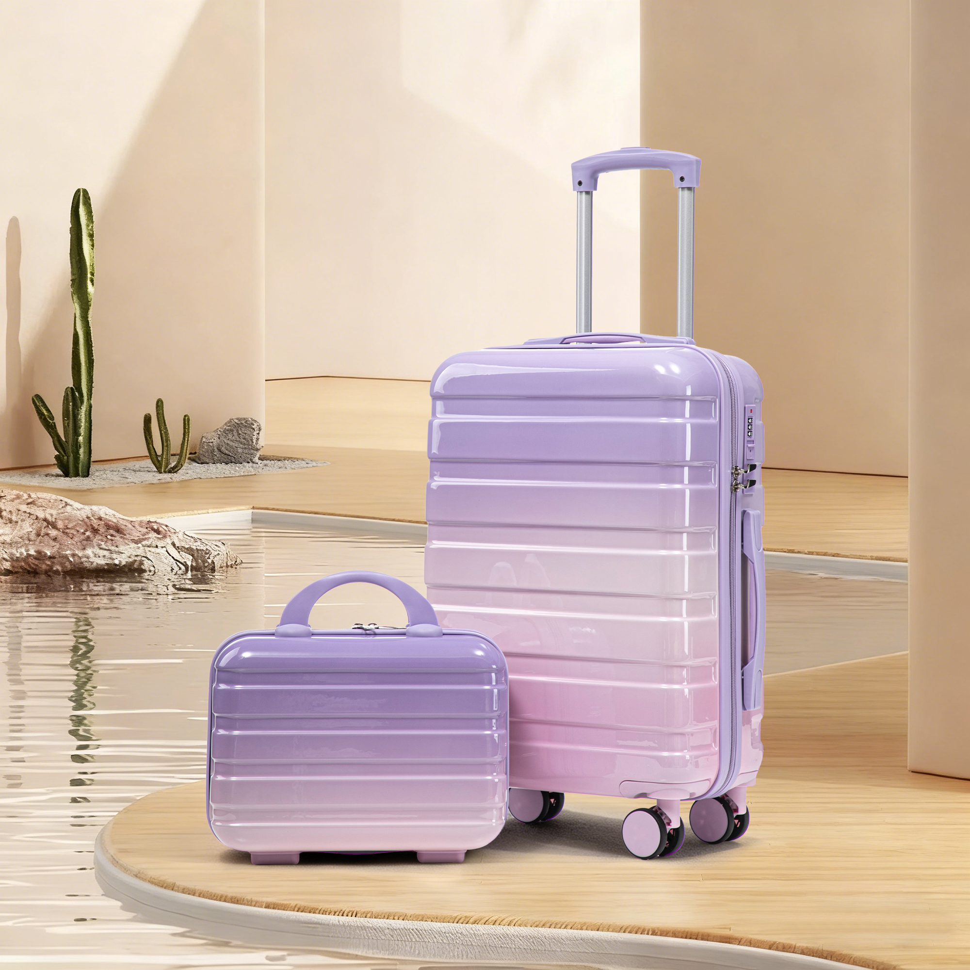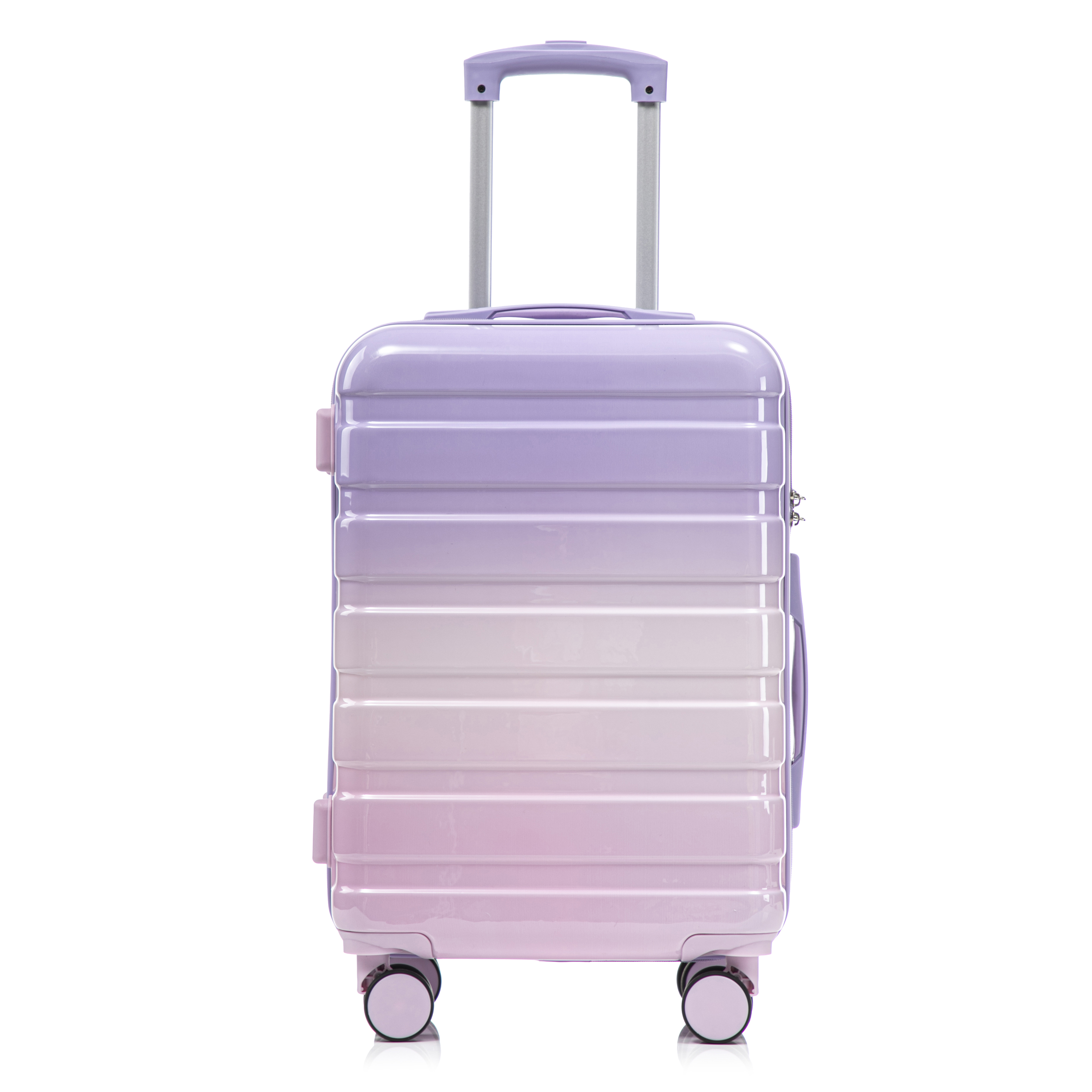 Product Name:14"/20" 2 pcs/set in PC Spinner Wheel Luggage, Carry on Suitcase, With Gradient Color and Combination Lock(Pink+Purple)