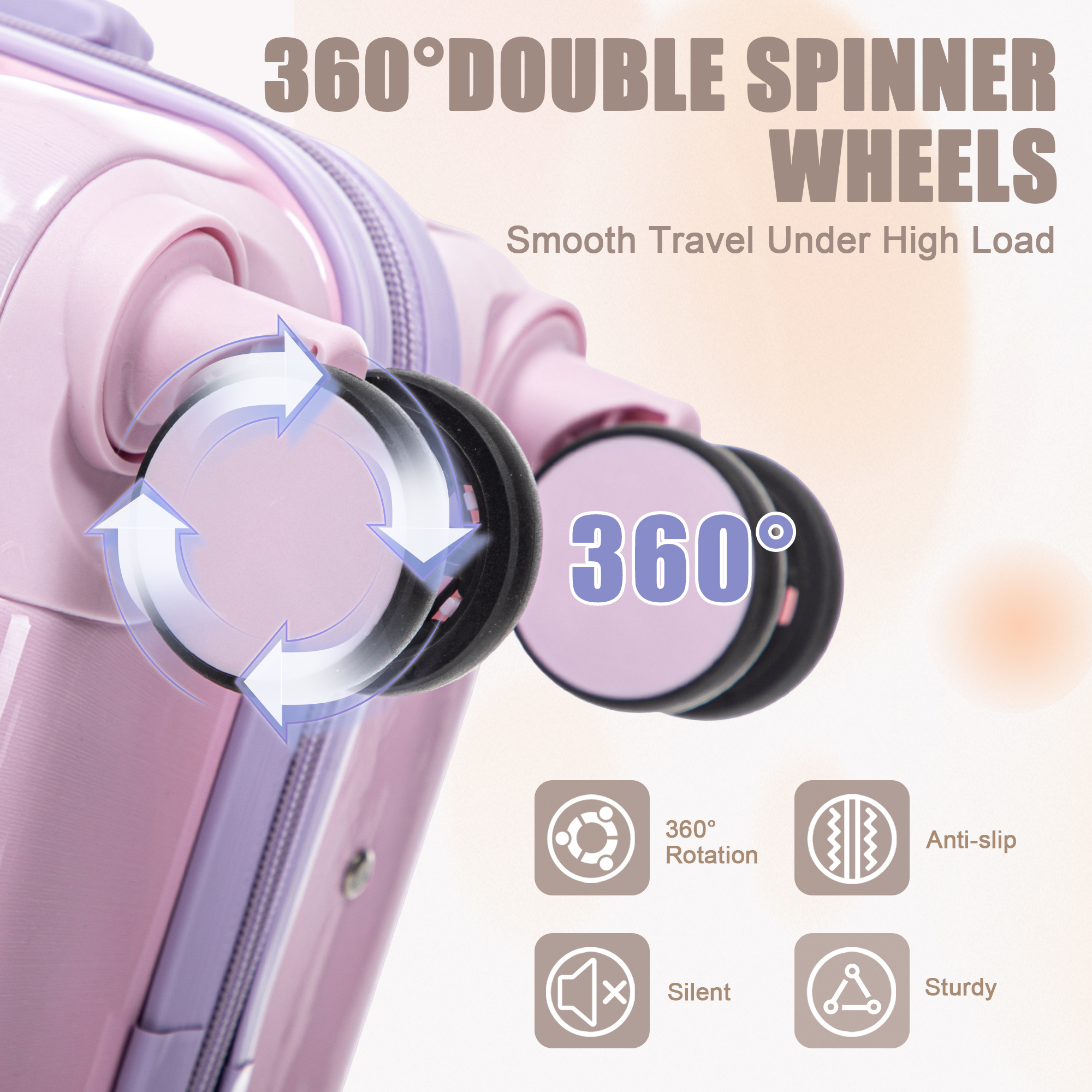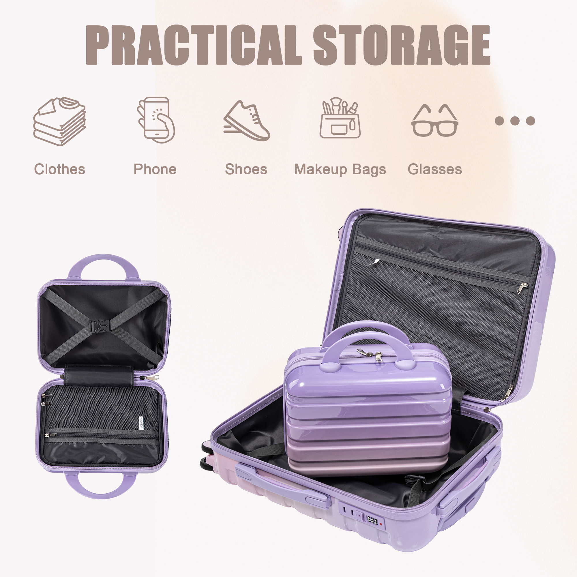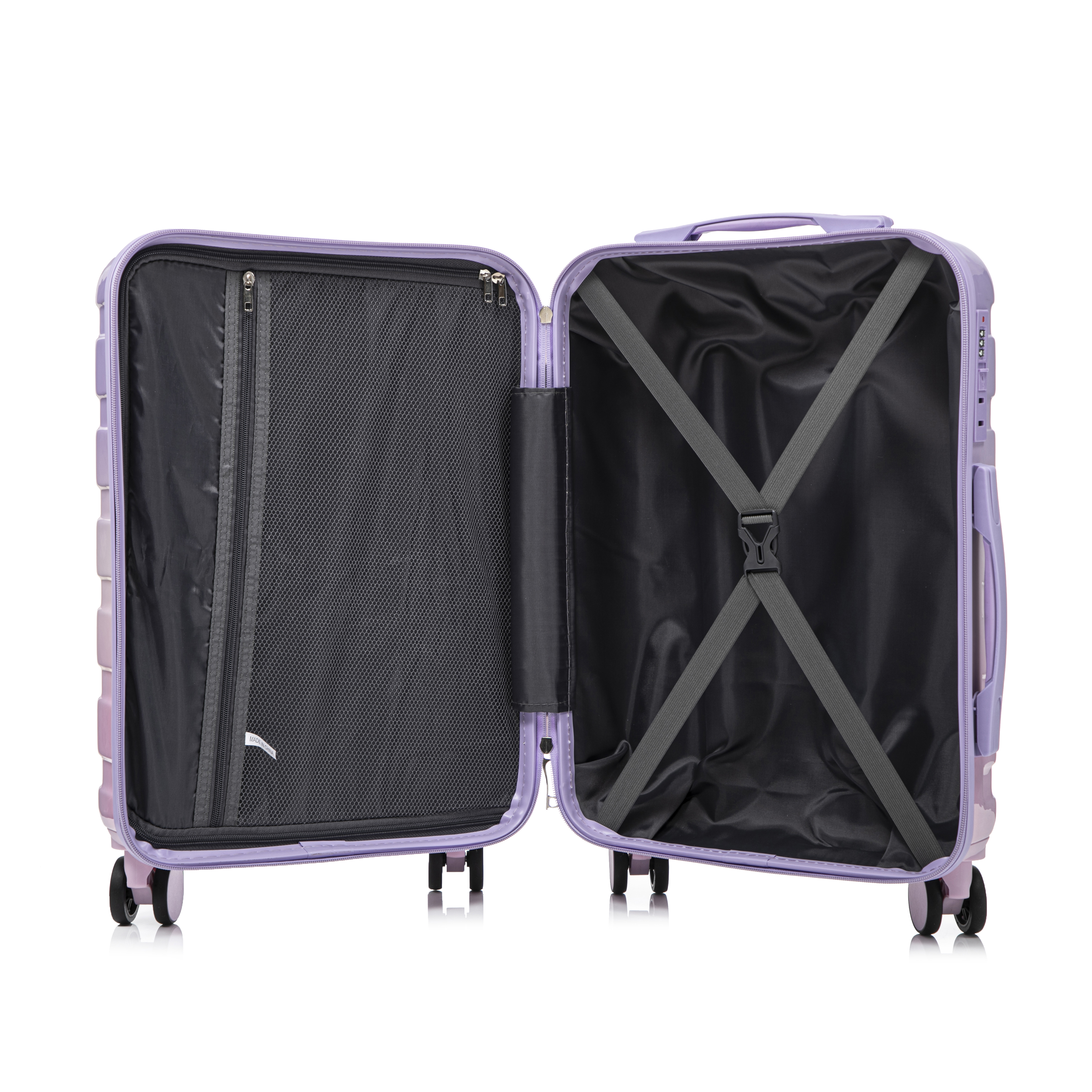 Product Name:14"/20" 2 pcs/set in PC Spinner Wheel Luggage, Carry on Suitcase, With Gradient Color and Combination Lock(Pink+Purple)