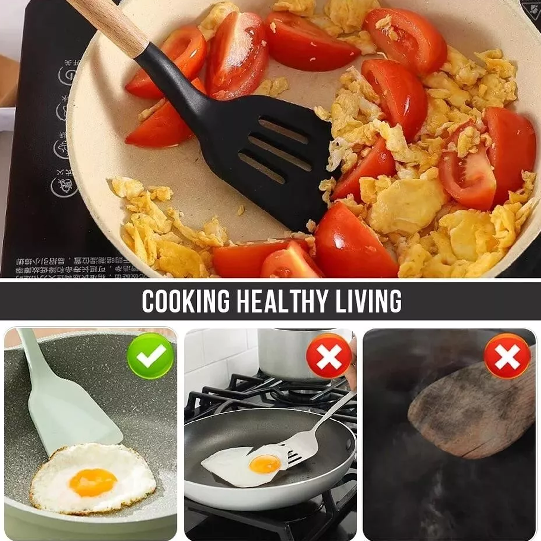 and not scald andrust like other metallic utensils. You can concentrate on cooking, high temperature and hot oil are handed over to them. Food grade silicone does not react with
