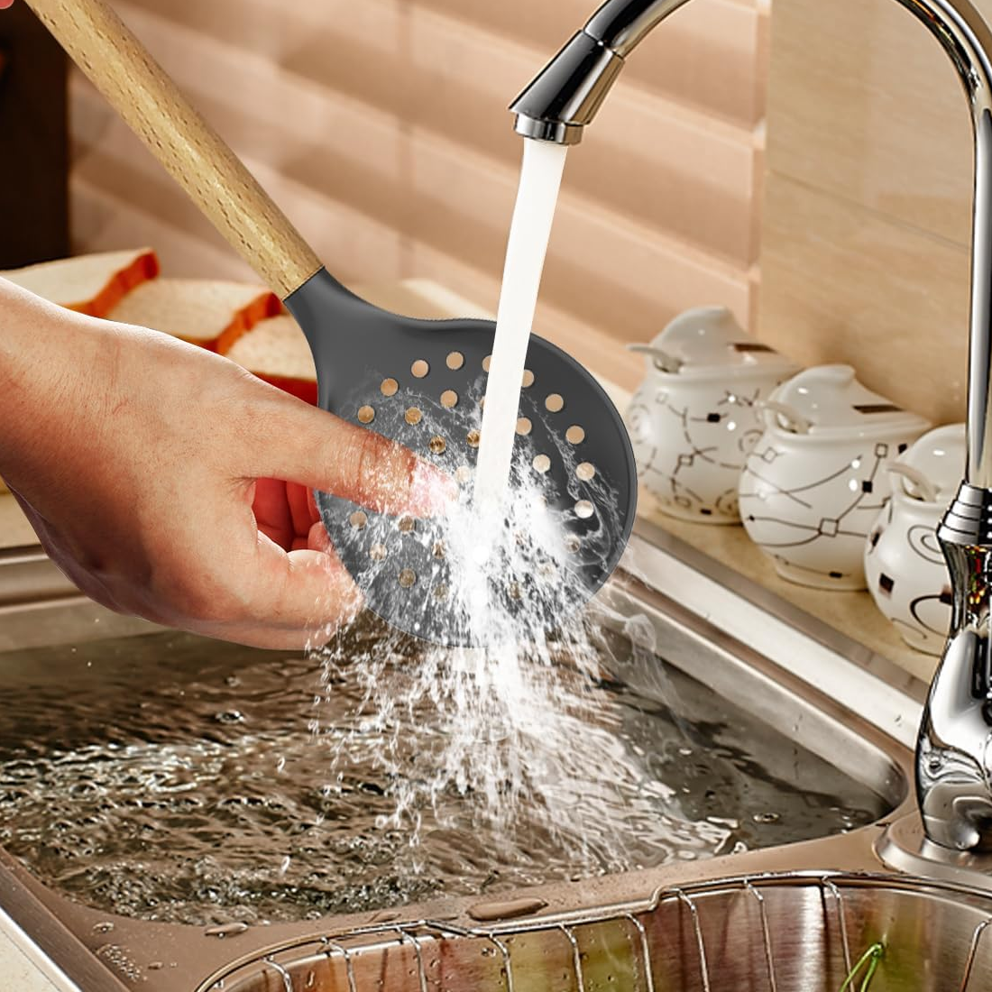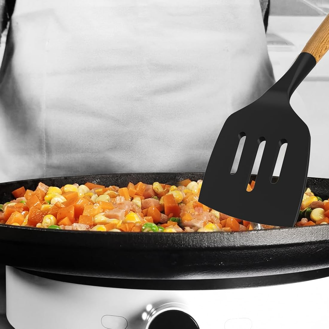 4.Heat Resistant: The utensils are heat resistant up to 446°F (230°C), making them perfect for use while cooking on high heat.
