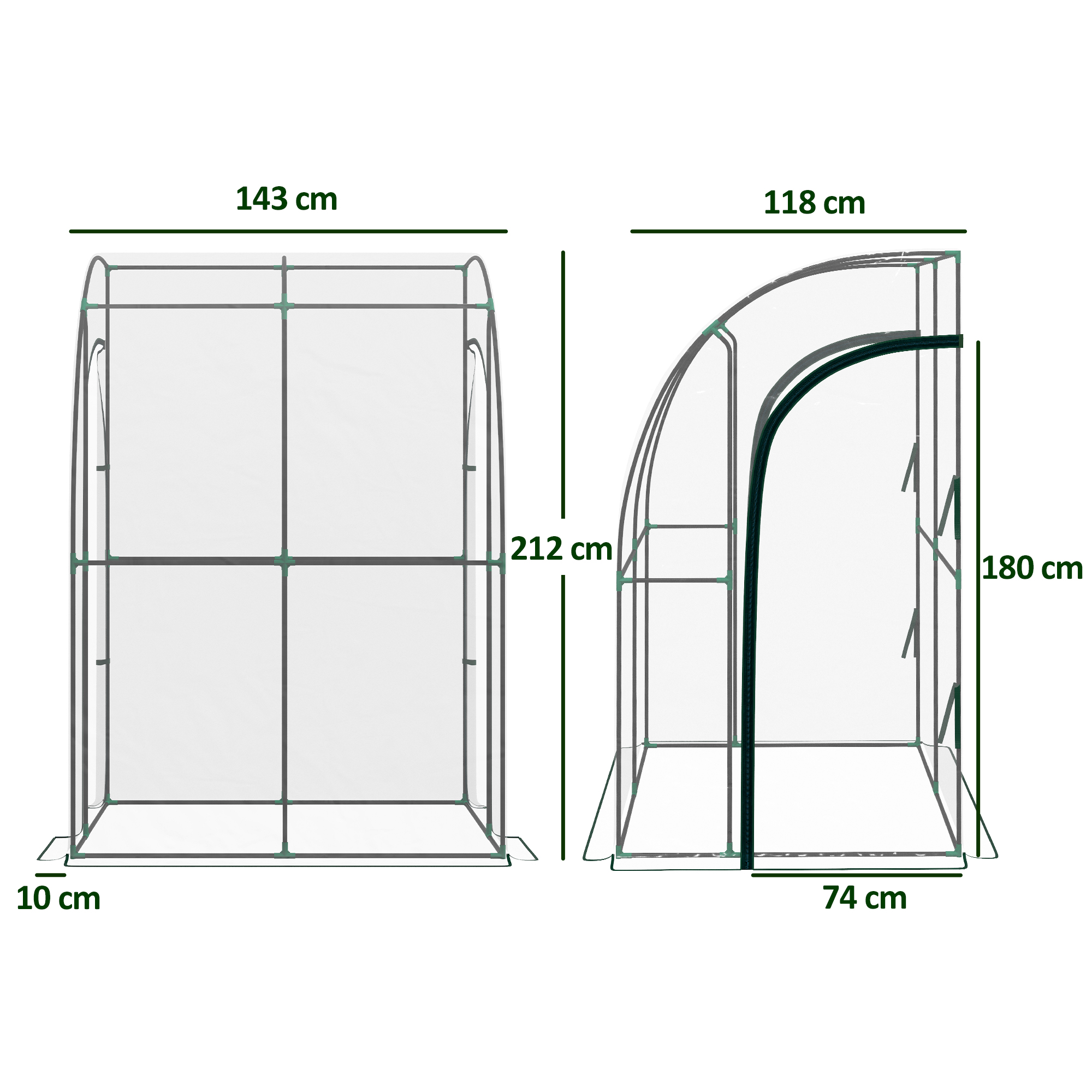 This walk-in garden greenhouse is designed for home gardening, even in limited spaces. The powder coated steel frame provides a robust structure, with wall nails and ground stakes included for additional support. The plastic cover effectively protects your plants, vegetables and flowers from light wind and rain whilst still allowing lots of sunlight to penetrate through. Your plants will thrive and grow to their fullest potential with this lean to greenhouse.
