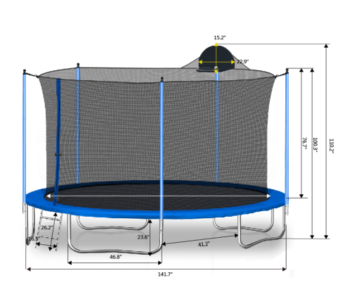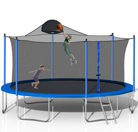 Product Name:14FT Trampoline for Adults & Kids with Basketball Hoop, Outdoor Trampolines w/Ladder and Safety Enclosure Net for Kids and Adults,Double-side Color cover