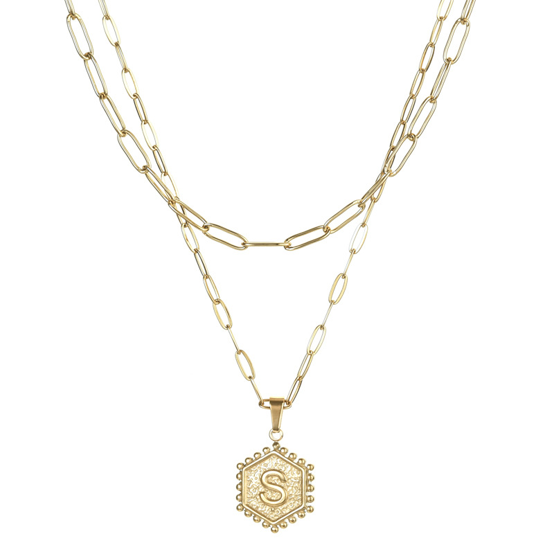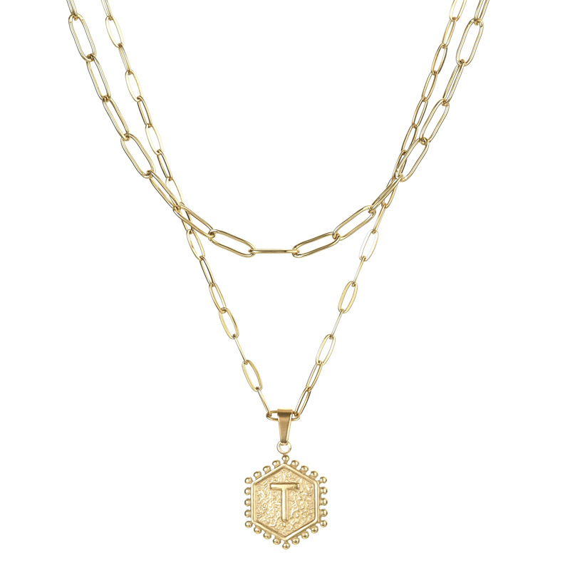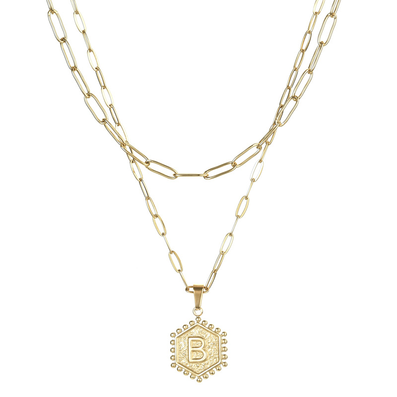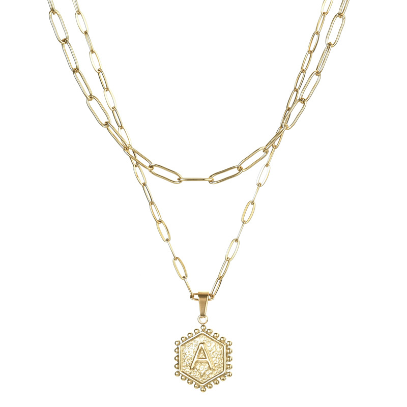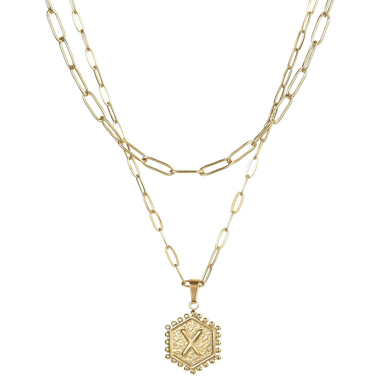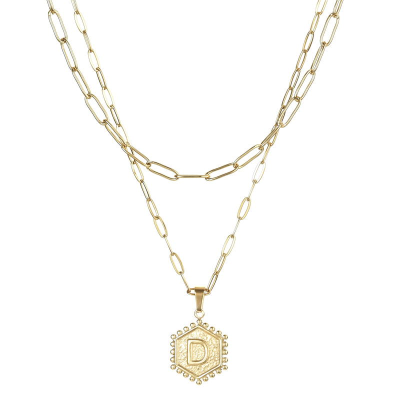 14K Gold Double-layer Combination Necklace Cool Female Letter Stainless Steel Necklace