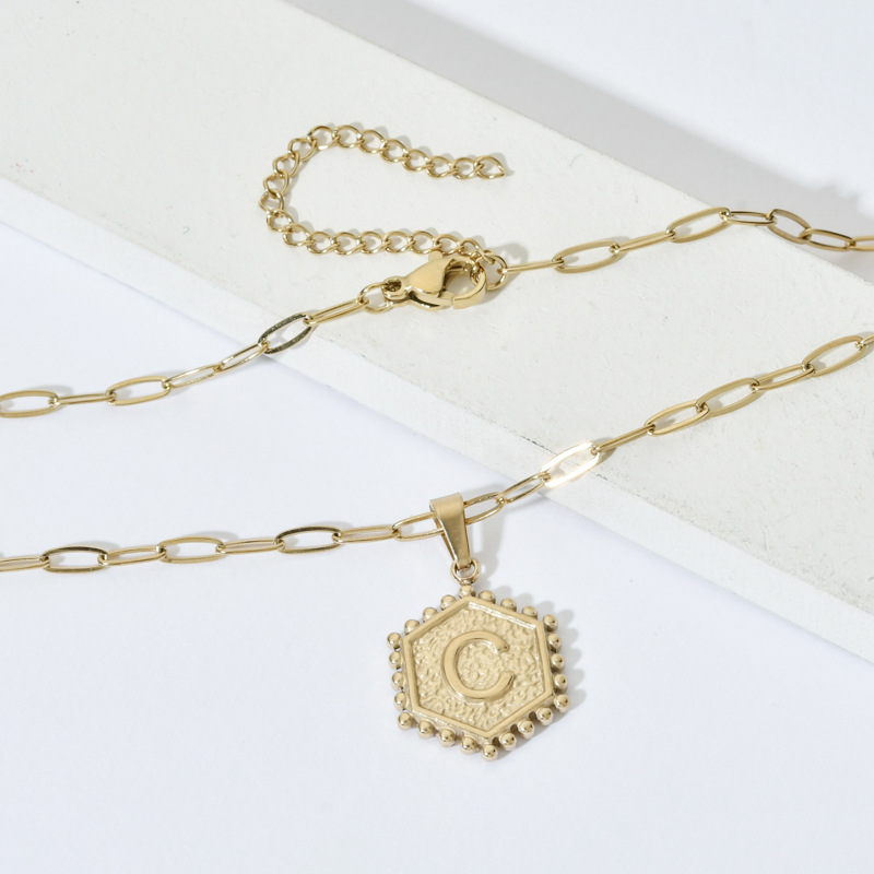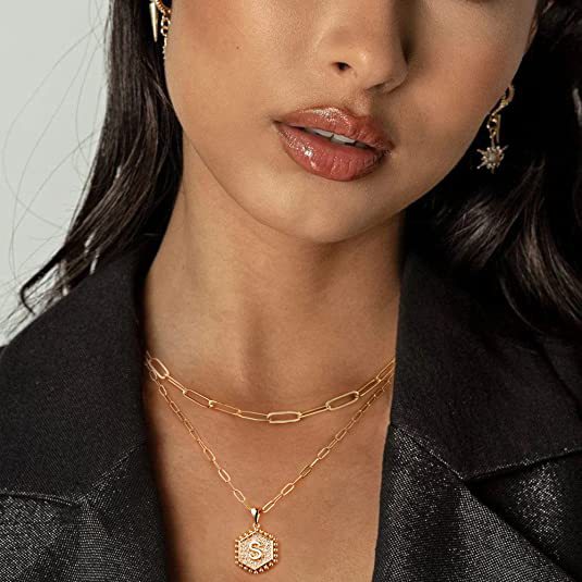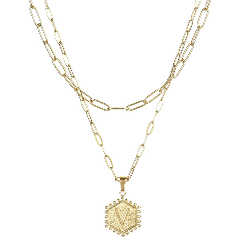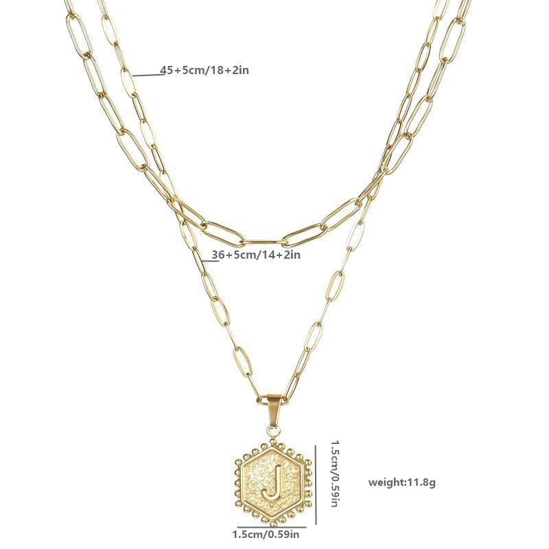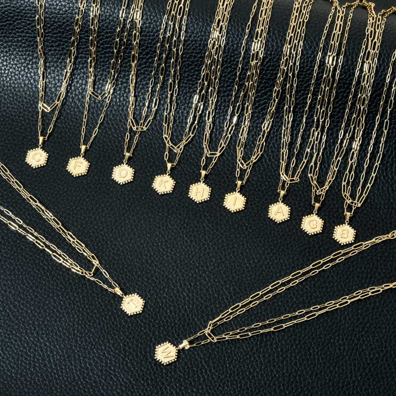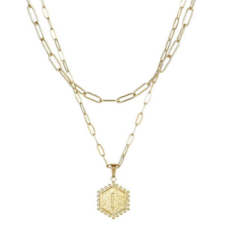 14K Gold Double-layer Combination Necklace Cool Female Letter Stainless Steel Necklace