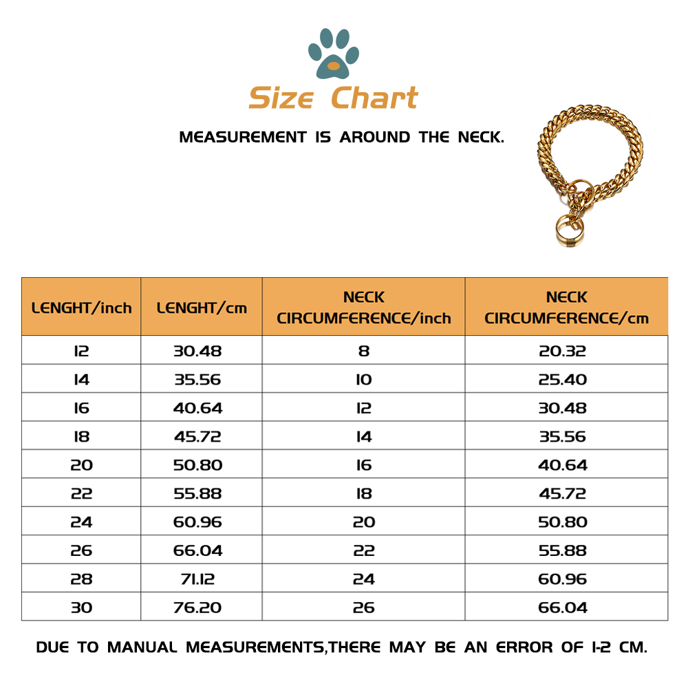 Specifications (length * width): 12 inches (recommended dog neck 8 inches), 14 inches (recommended dog neck 10 inches), 16 inches (recommended dog neck 12 inches), 18 inches (recommended dog neck 14 inches), 20 inches ( Recommended dog neck 16 inches), 22 inches (recommended dog neck 18 inches), 24 inches (recommended dog neck 20 inches), 26 inches (recommended dog neck 22 inches), 28 inches (recommended dog neck 24 inches), 30 inches ( Recommended dog neck is 26 inches)