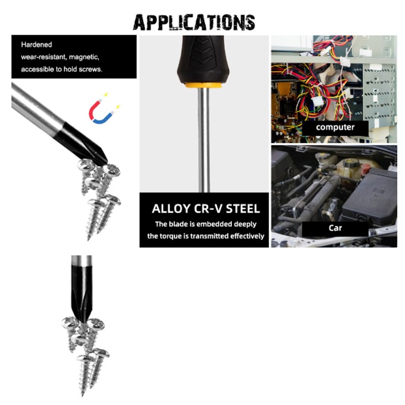 Magnetic bits are firmly fixed on screwdrivers.