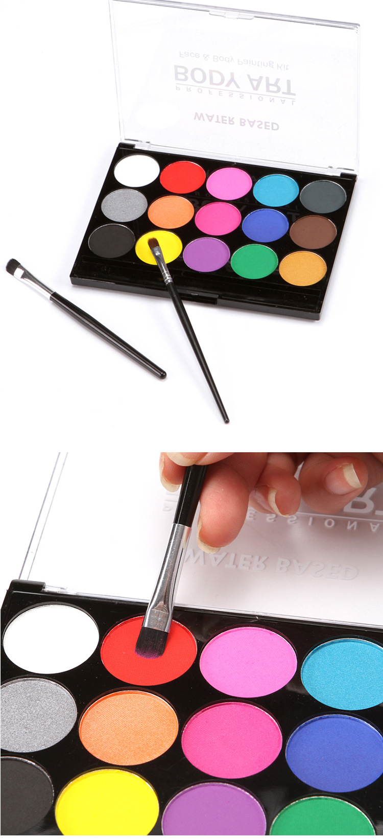 Color: 15 colors (including 2 white)+high-grade nylon hair makeup brush) with gold
