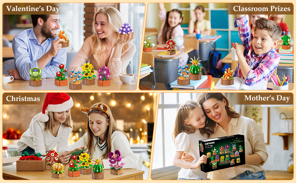 CUBIMANA flower building blocks set is packaged in a beautifully designed gift box, containing 15 individually wrapped kits, perfect for gift giving. Whether it's your lover, girlfriend, wife or mother, this is an ideal gift for birthdays, Christmas, Valentine's Day, weddings, anniversaries, New Year, Mother's Day, Easter and Thanksgiving.