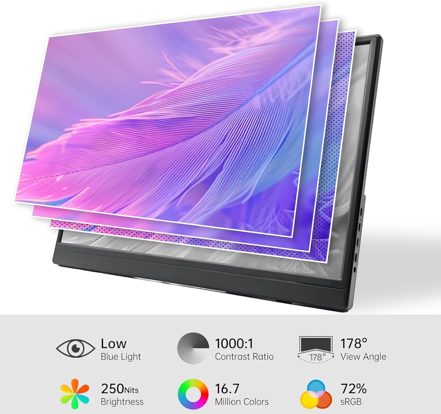 Screen size: 15.6 Inch LCD IPS Screen, 178 degree full viewing angle