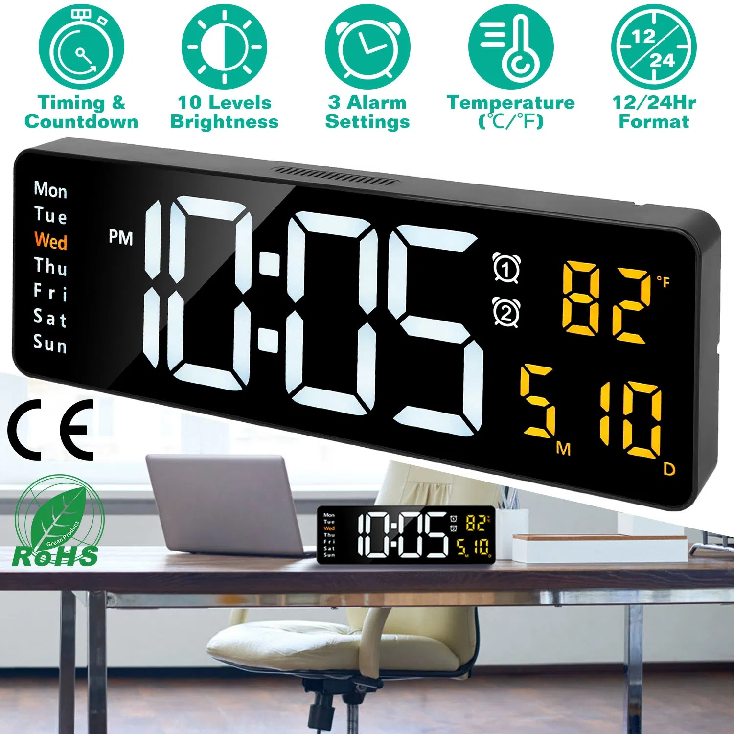 Automatic Brightness Adjustment: The wall clock can automatically adjust its brightness according to the environmental conditions, which makes it perfect for nighttime reading and all-day and night activities. The LED digital clock features 10 brightness levels. You can easily adjust manually with a remote control.
