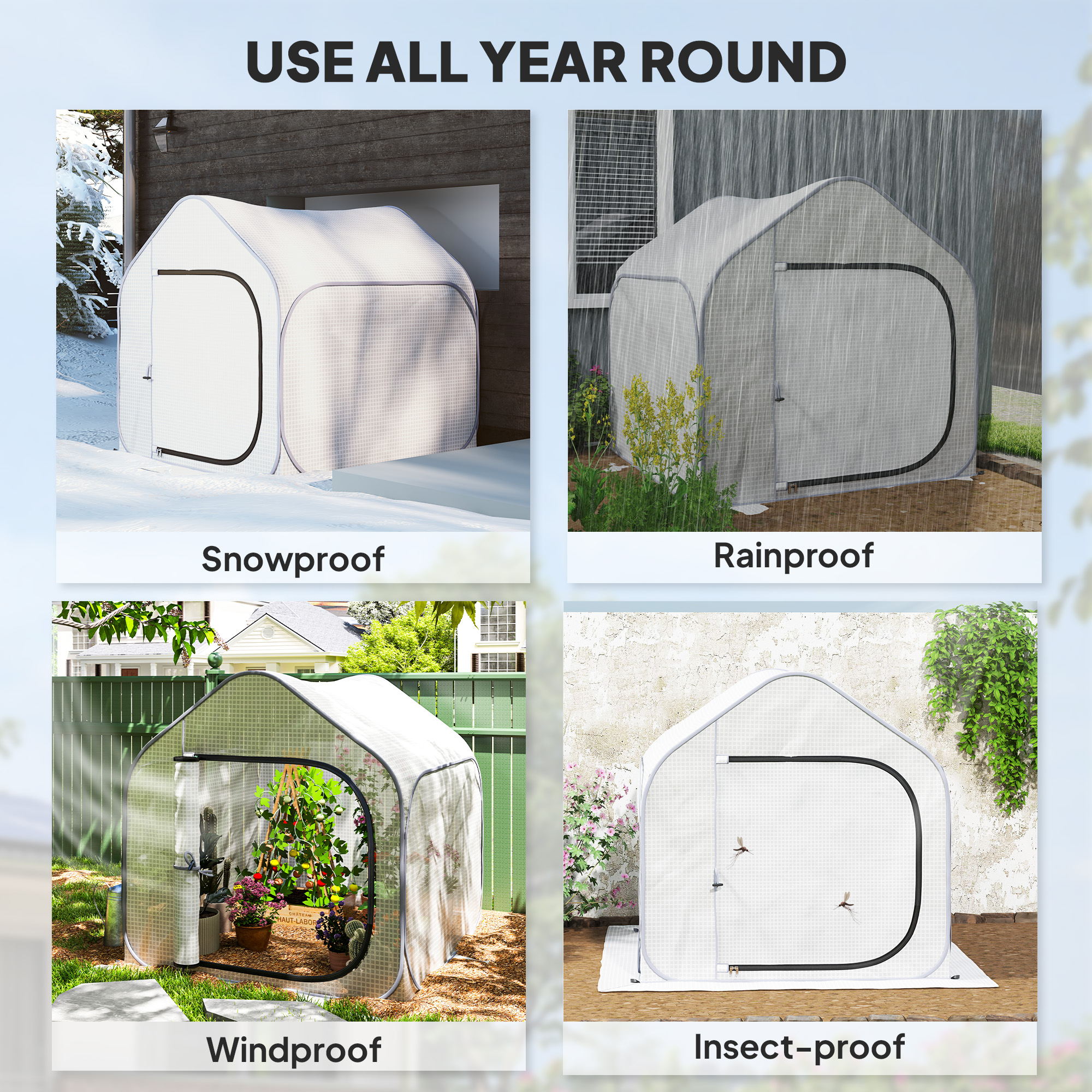 No matter the space, you can grow plants, flowers or small vegetables with this pop-up greenhouse! A mini 150 x 148cm size, it is portable and foldable: bring out and store away easily, whenever. Fitted with a 140g/m² plastic cover, keeping inside shielded from rain and wind, whilst letting nourishing sunlight through - encouraging all the growth as possible. The growing possibilities are endless...