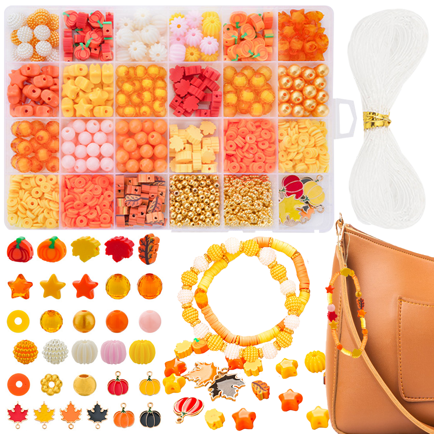 Package contents: 1510 Pcs Fall Theme Bracelets Beads Kit