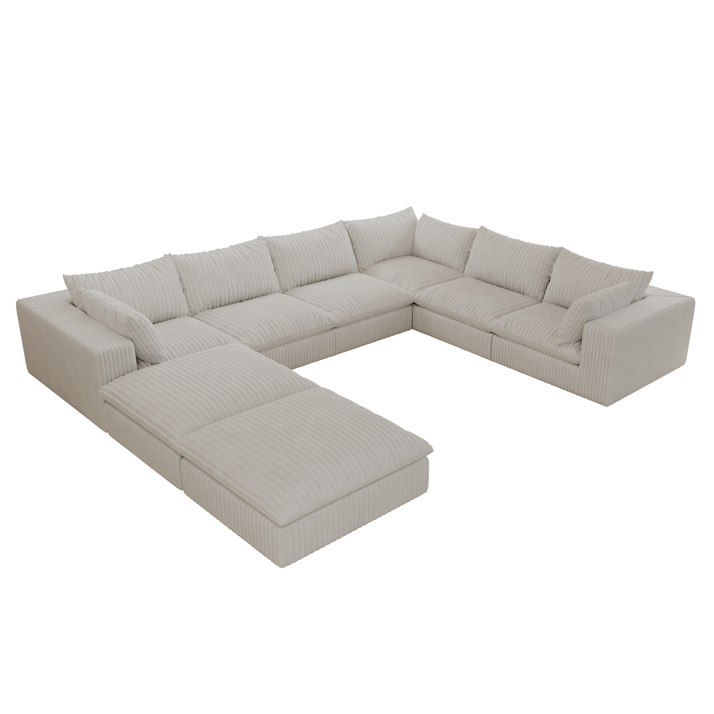 157.6 Cloud Sofa,Corduroy Fabric,Deep Seat Couches,Double-layer Design,Removable Cushion,No Assembly, DIY Combination For Living Room, Bedroom,Conference Room ,Apartment,White