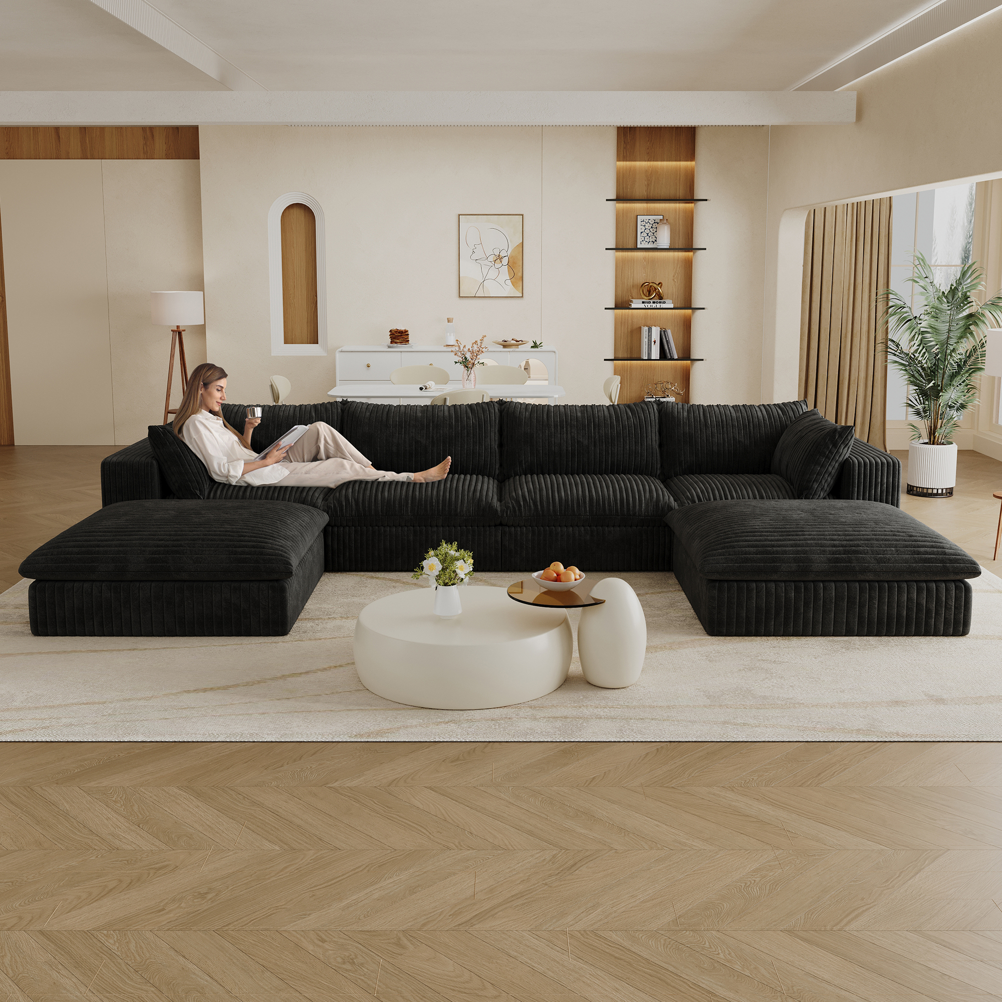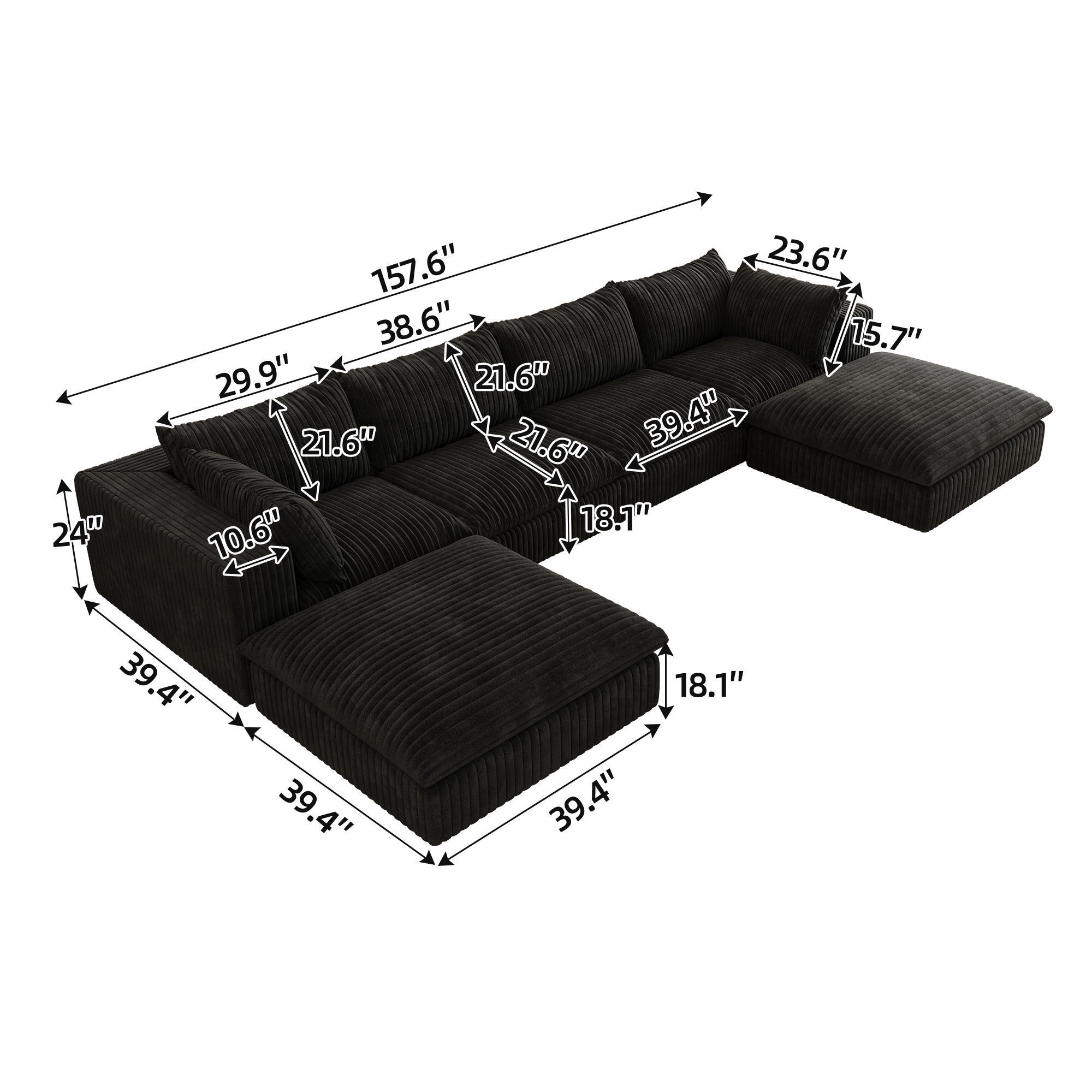 Product Name:157.6"Cloud Sofa,Corduroy Fabric,Deep Seat Couches,Double-layer design,Removable Cushion,No Assembly,DIY Combination for Living room, Bedroom,Conference room ,Apartment,Black