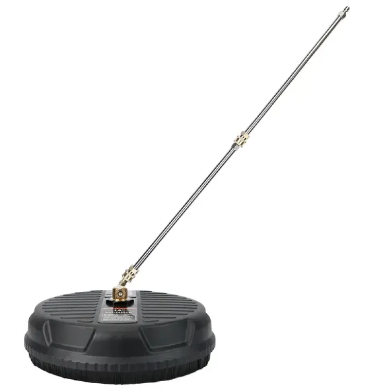 *Cleaning Floor Effectively*:Pressure washer surface cleaner delivers professional level cleaning over an area 15in wide with two spinning nozzles. The tough and flexible bristles protect work surface and controls over-spray. Splash-free design keeps you dry while you clean. *Wide Applications*:Our Pressure Washer Surface Cleaner is designed to clean large areas such as paths; driveways; decks and other large surfaces; also used on vertical surfaces like brick walls; stucco and other siding; etc.. *Fit For Machines*:Fits for most gas-powered pressure washers rated up to 4000PSI and for cold water use only. Two 1/4 inch Quick Connectors are connected with the two wands firmly. *Heavy Duty Materials*:Made of heavy duty brass; stainless steel and durable hard composite construction; our Power Washer Surface Cleaner is durable enough for long using. *Connect Easily*:Pressure washer surface cleaner attaches to 1/4in quick-connect capable wand with ease just like a spray nozzle. Package includes 2x15in pressure washer wand with one rounded surface cleaning tool.