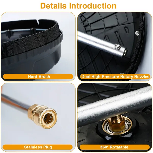 *Heavy Duty Materials*:Made of heavy duty brass; stainless steel and durable hard composite construction; our Power Washer Surface Cleaner is durable enough for long using.