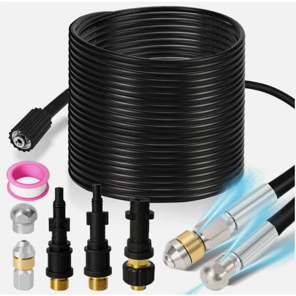 · Powerful & Efficient Cleaning: Delivers up to 160 Bar working pressure, perfect for both indoor and outdoor use. Quickly blasts through clogged pipes, blocked drains, gutters, and downpipes with ease.