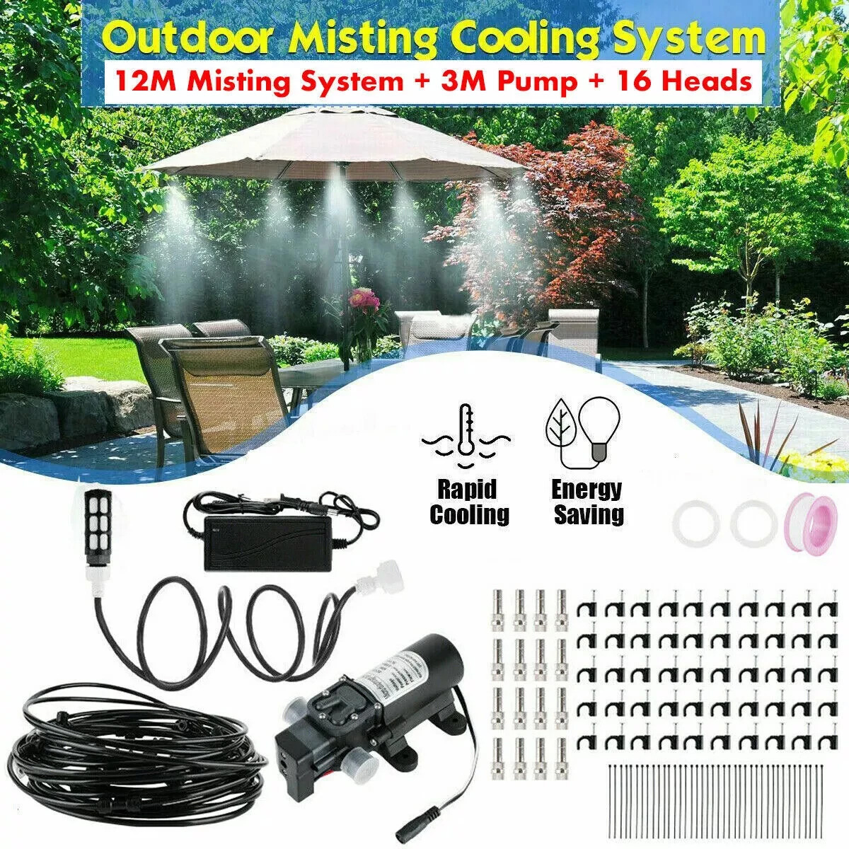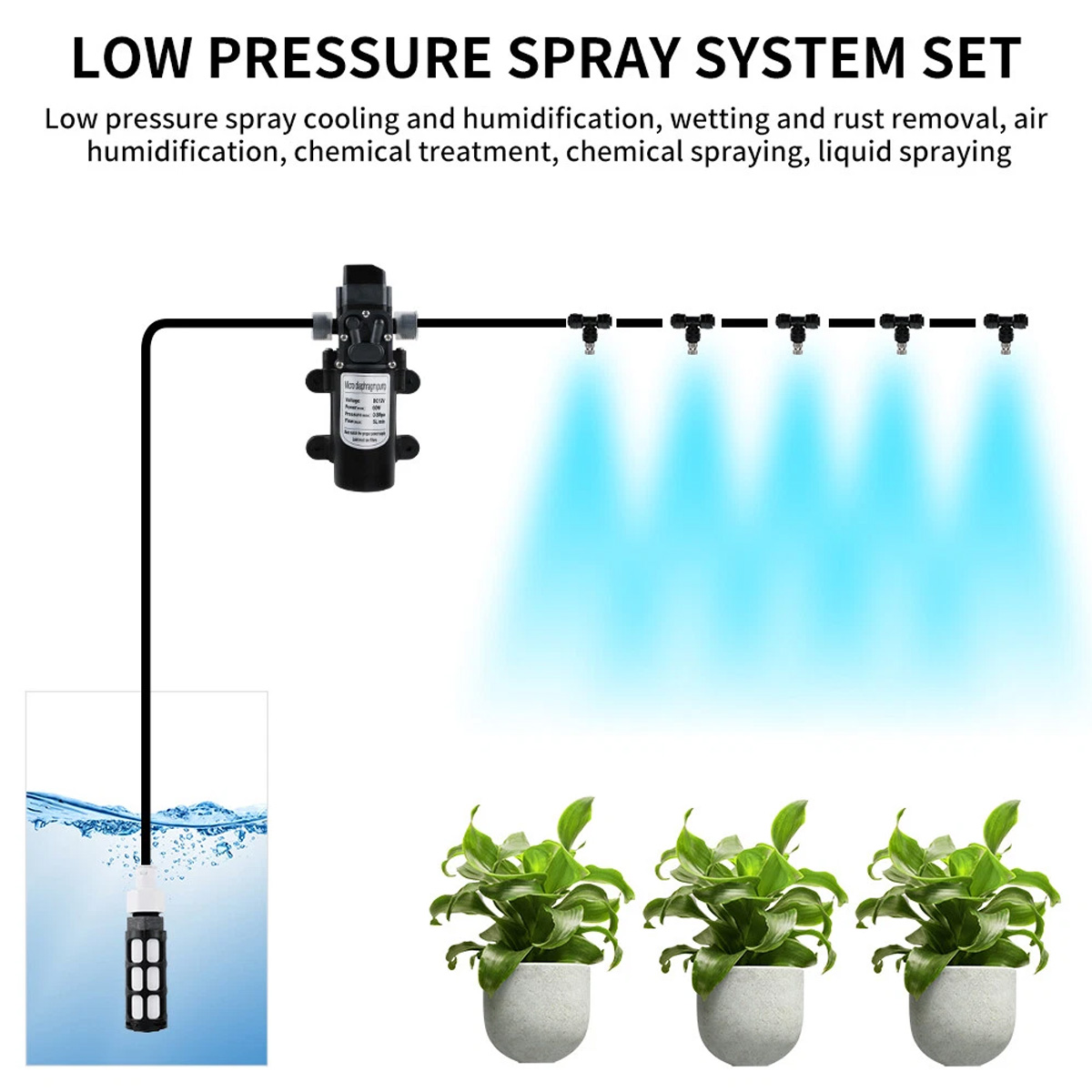 12V pump + power supply + tap water low-pressure spray system kit, 12-meter water pipe + 3-meter water supply pipe (total 15 meters)