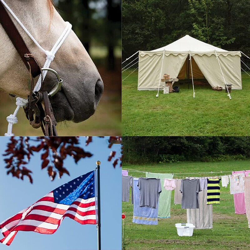 * home and outdoor activities. This utility rope is ideal for clothesline, flag pole rope, baby swing, canoes, tree work, canoes. Helpful for keeping your tent secure, use to secure loads when you are driving.