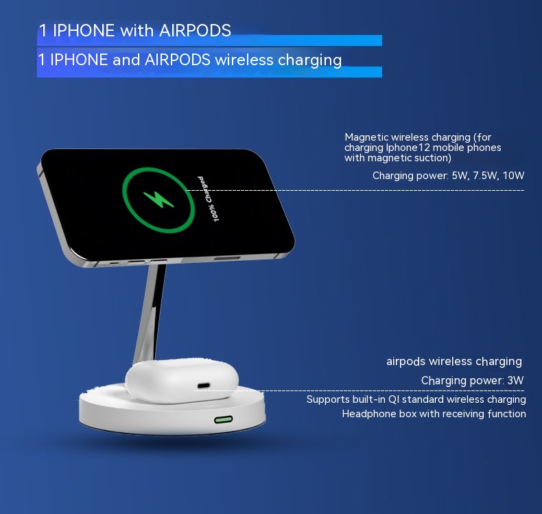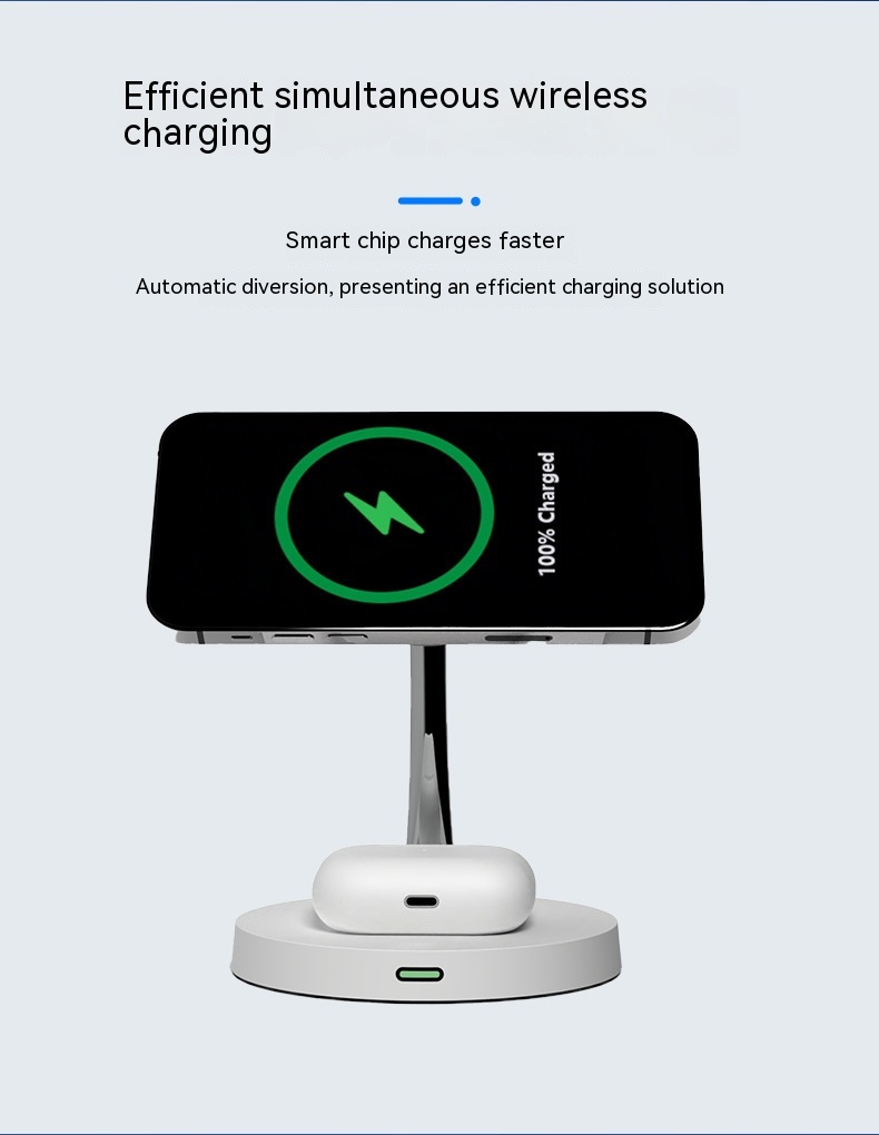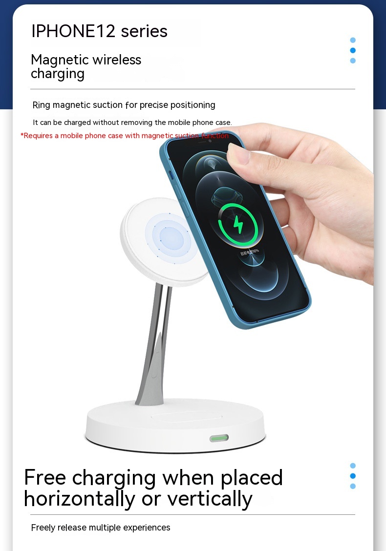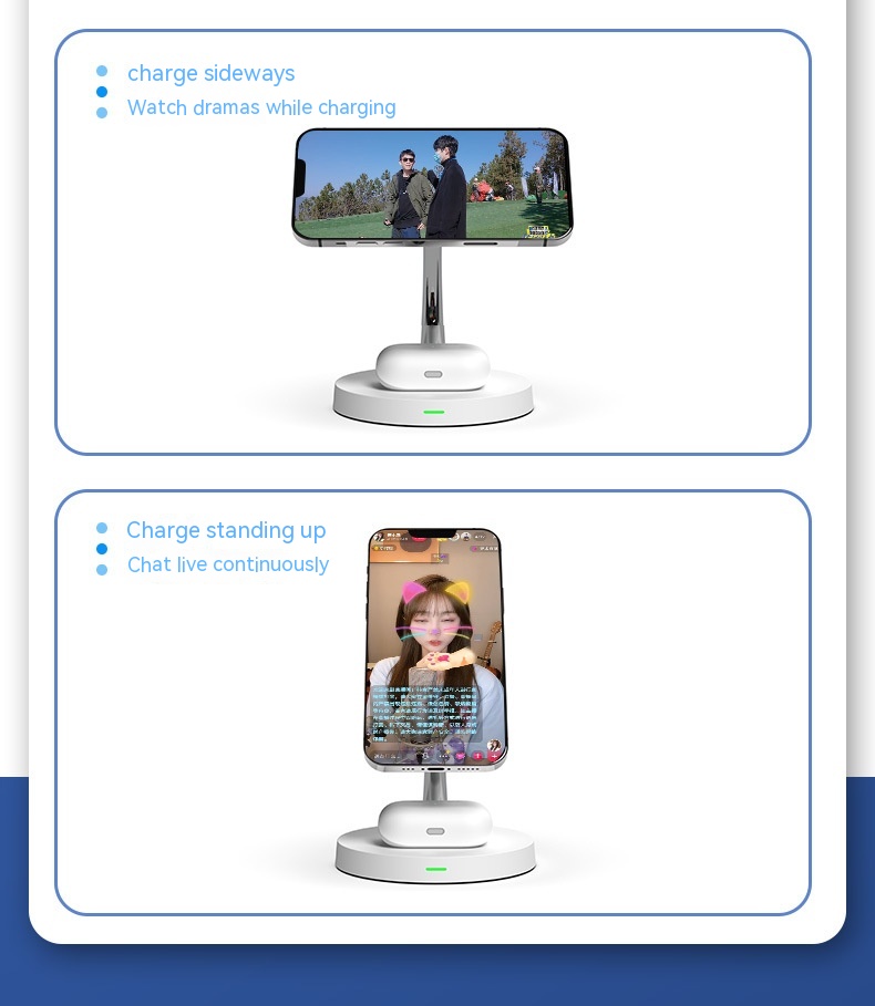 2. Output power: Magnetic bracket: 10W/7.5W/5W; Base wireless charging: 15W/10W/7.5W/5W (headphone 2W); Night light 2W