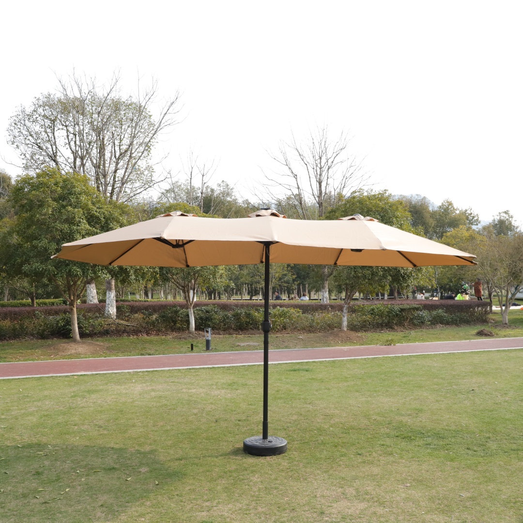 Product Name:15x9ft Large Double-Sided Rectangular Outdoor Twin Patio Market Umbrella with light and base- taupe