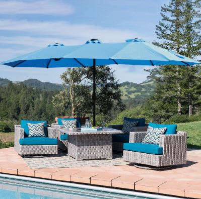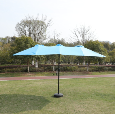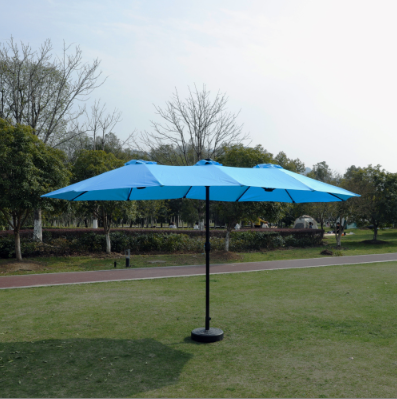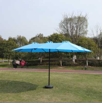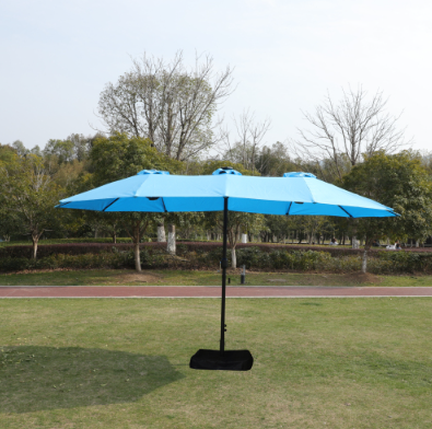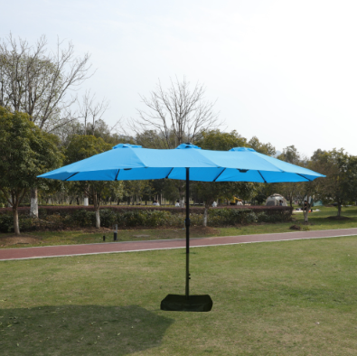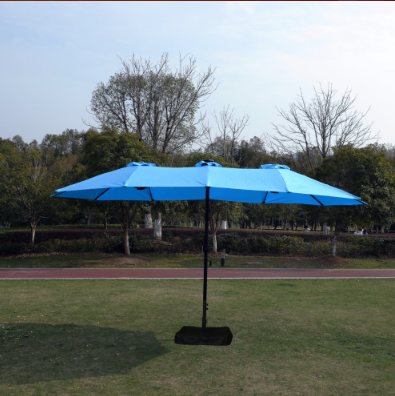 This unique choice double-sided rectangular patio market umbrella made of thick steel pole and quality polyester, which is anti-rust and waterproof that great for outdoor use. The 15 ft patio double-side umbrella provides an ample shade to keep you cool and protect from hot sun. The extra large double-sided design also matches your desk and chair and provides more shade area. You can easily use the crank to turn it on or off which is not only laborsaving but also safe. Vents give you more coolness and safety because it allows airflow and reduce wind pressure. Assembly is easy and can be done without the aid of tools.