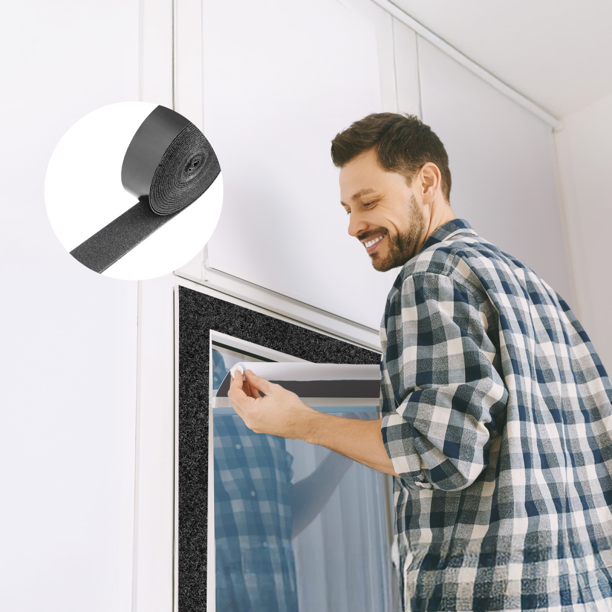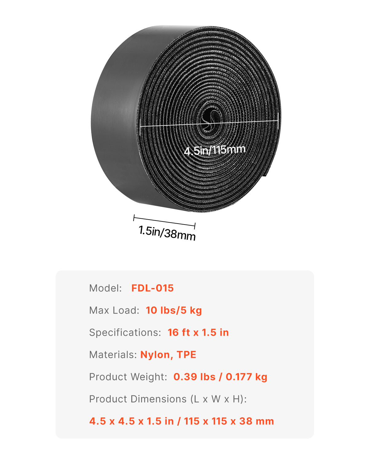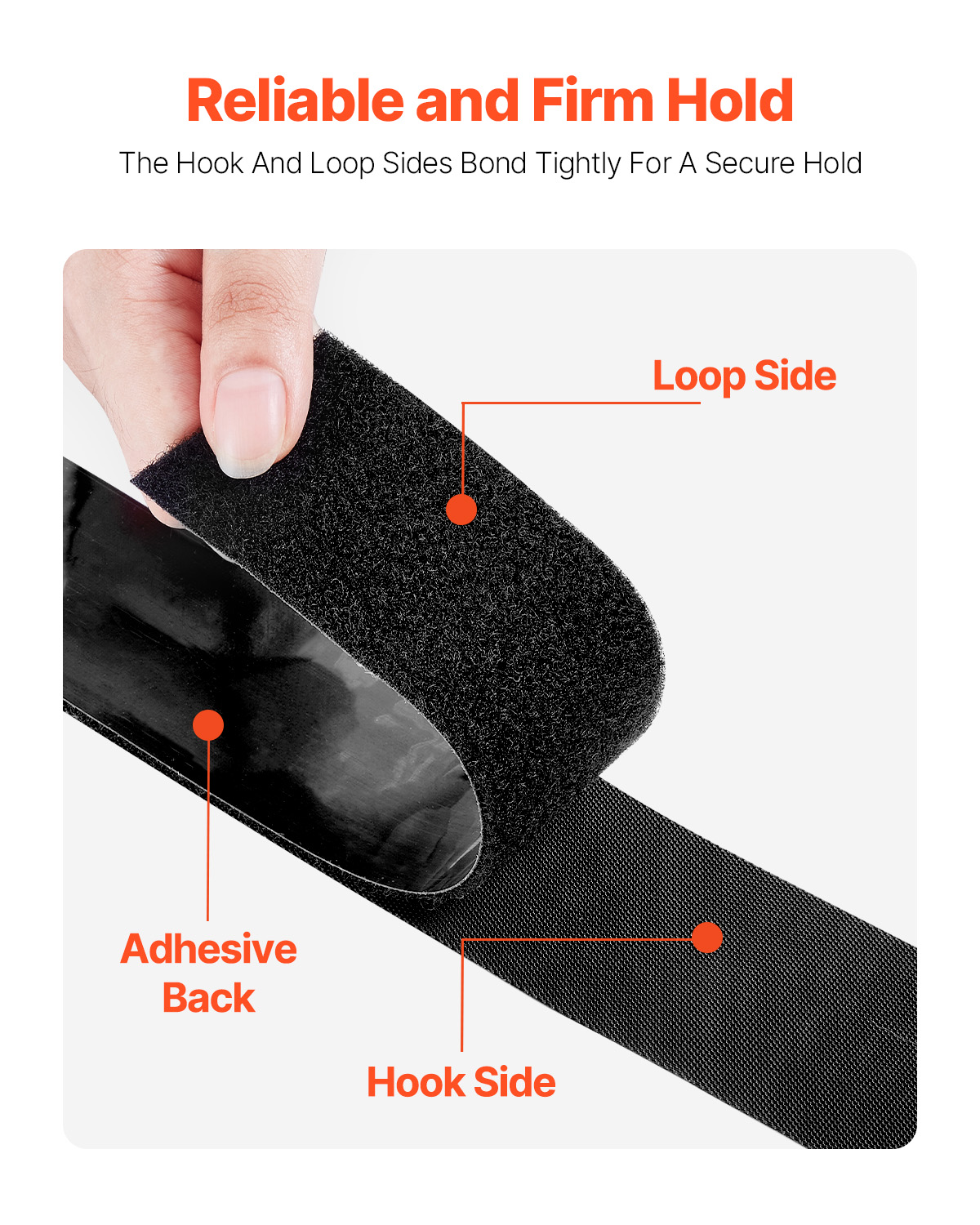 16 Ft X 1.5 In Hook And Loop Tape Nylon Self Adhesive Strips Roll Black