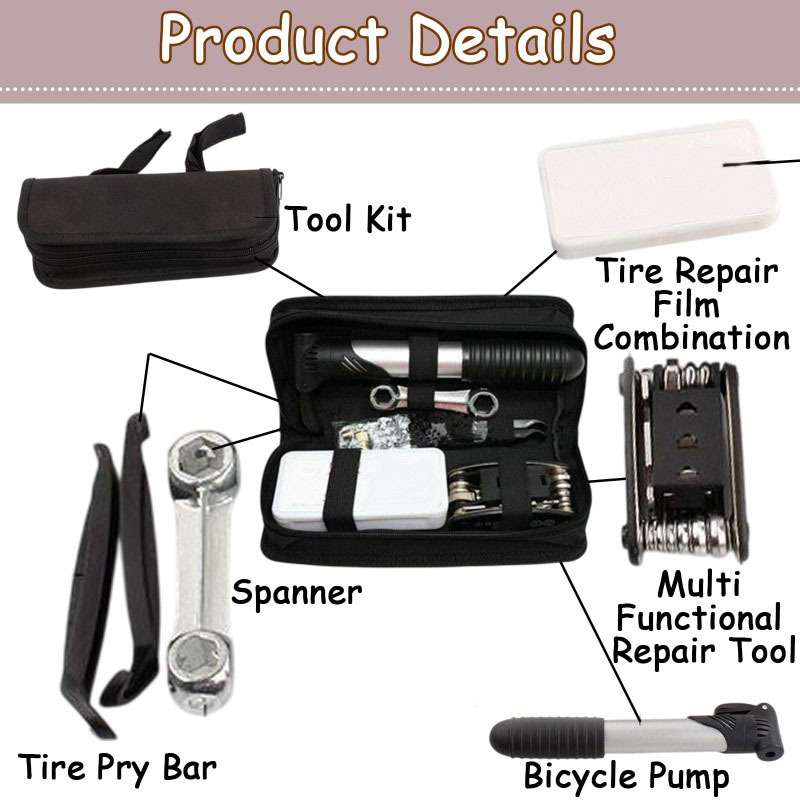 16-in-1 bike tool kit with Tyre Repair & Valve Core Tool, Portable bike repair kit for Road & MTB, Compact bike multi tool Set, Essential bike tools kit set with Bag, Durable bike tool and bicycle tool kit for Travel & Camping