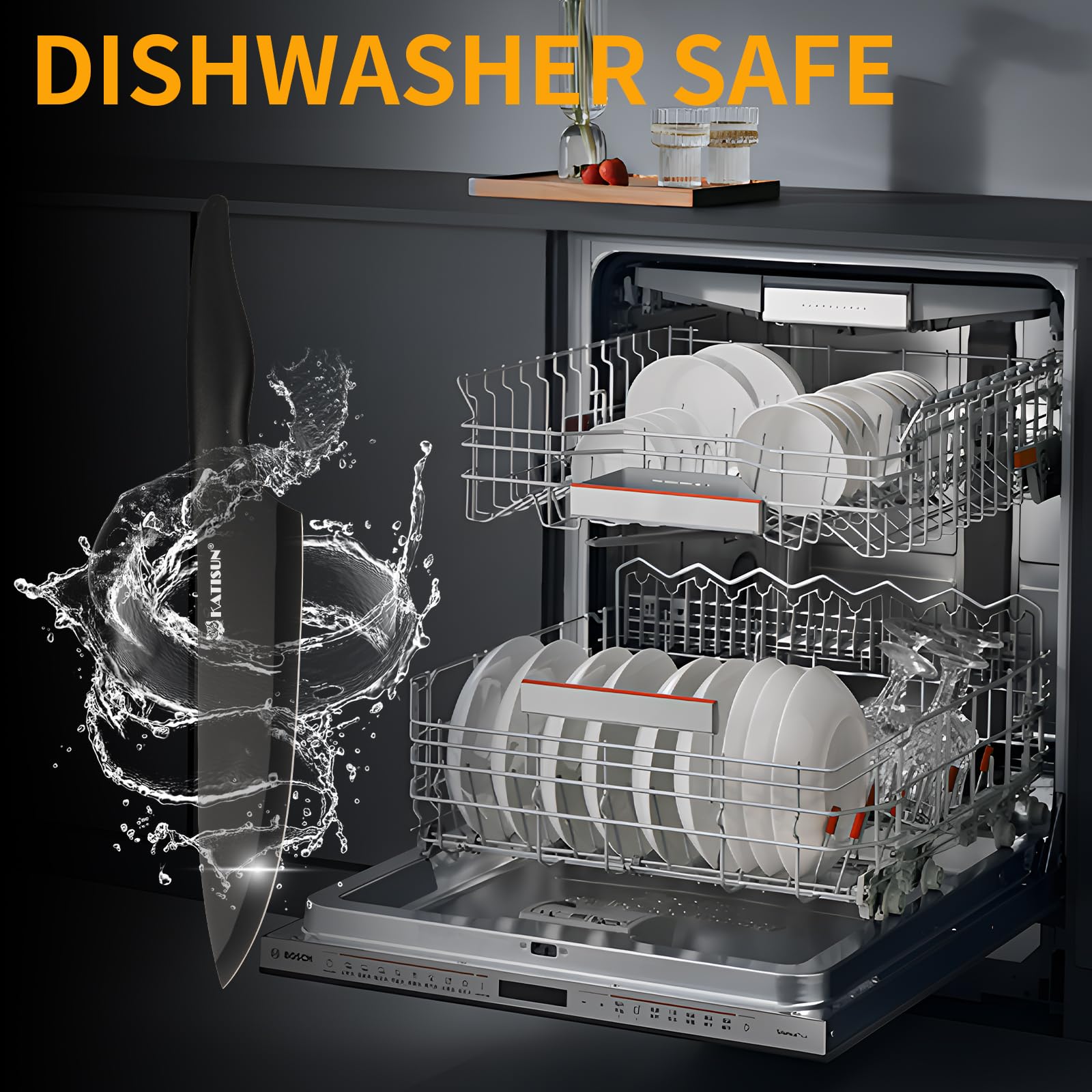 CONVENIENT CARE & STORAGE - Enhance your kitchen with our knife sets in a stylish block. Crafted from premium wood, this compact block securely holds and organizes your knives while protecting their sharp edges. Its durable and easy-to-clean design guarantees long-lasting performance, providing a convenient and visually appealing storage solution for your prized kitchen knives.