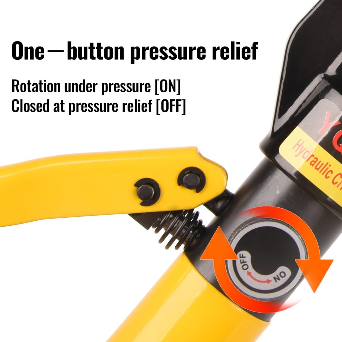 Convenient to operate: C-style head makes side entry easy to access and operate; on / off knob for easy crimping and arm retraction; tool-free die change; 8" long non-slip handles for easy and secure crimping operations
