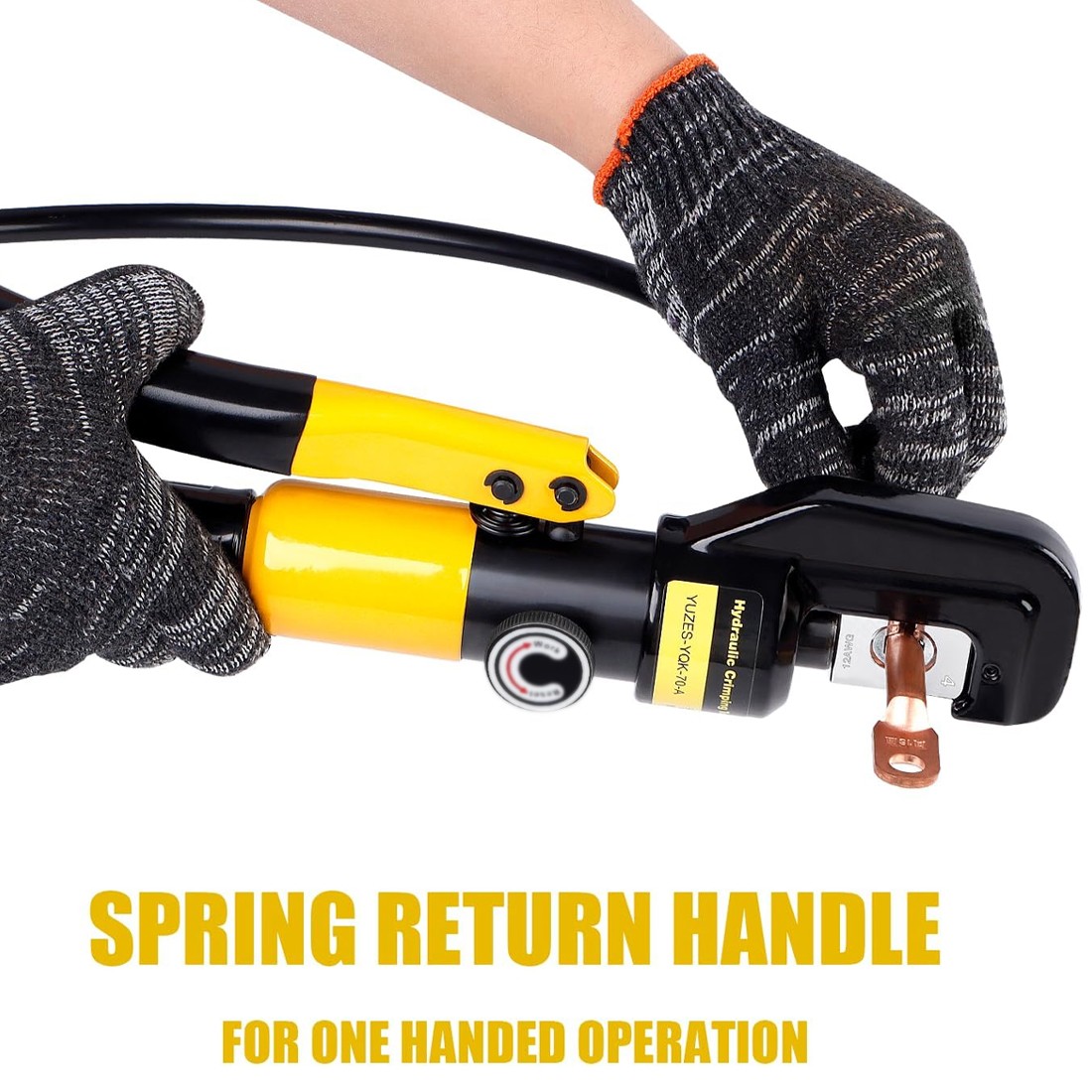 Powerful and effortless crimping: maximum crimping power of 12 tons offers a good squeeze to prevent loose crimp and arcing